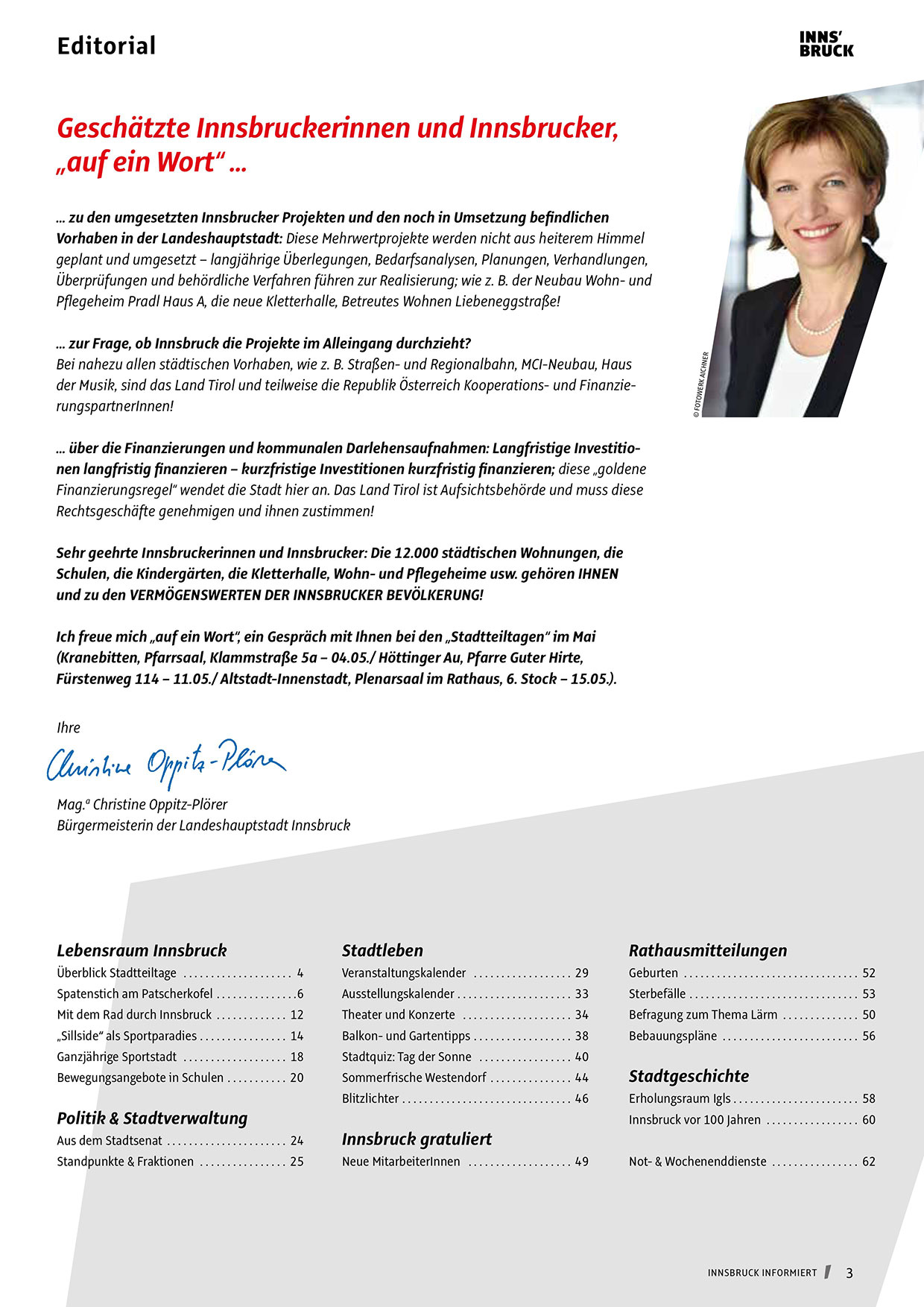 Geschätzte Innsbruckerinnen und Innsbrucker,