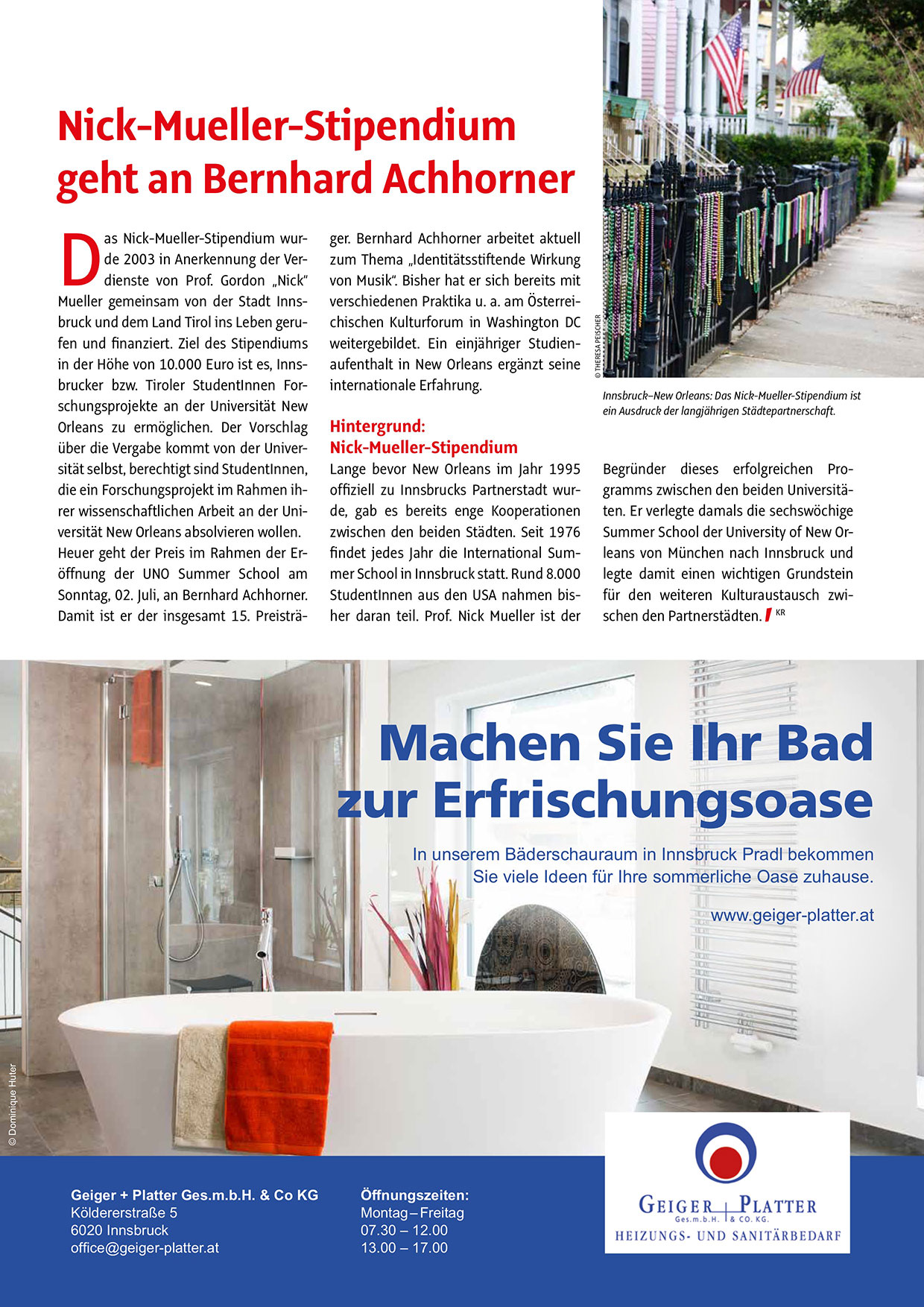 Innsbruck–New Orleans: Das Nick-Mueller-Stipendium ist