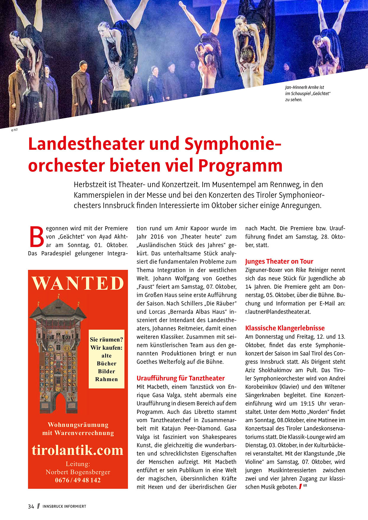 Kammerspielen in der Messe und bei den Konzerten des Tiroler Symphonieorchesters Innsbruck finden Interessierte im Oktober sicher einige Anregungen.