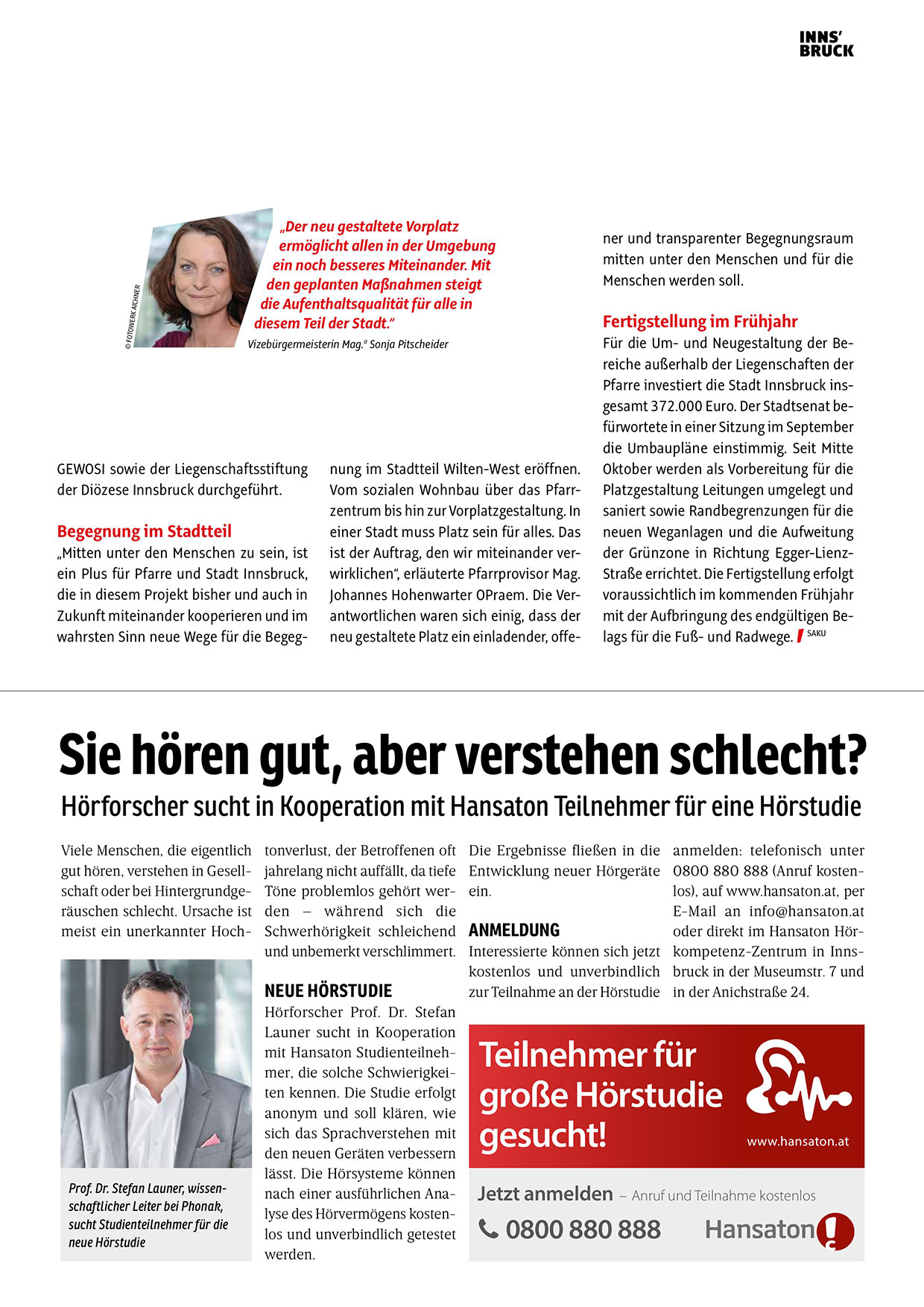 Pfarre investiert die Stadt Innsbruck insgesamt 372.000 Euro. Der Stadtsenat befürwortete in einer Sitzung im September