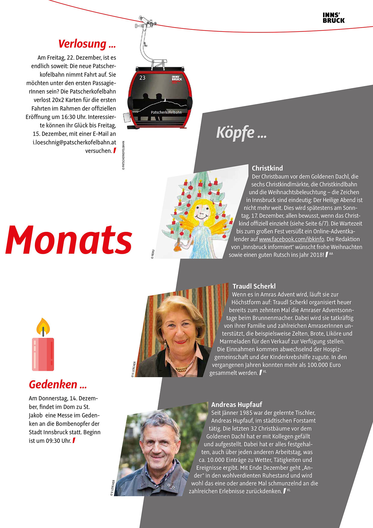 nicht mehr weit. Dies wird spätestens am Sonntag, 17. Dezember, allen bewusst, wenn das Christkind offiziell einzieht (siehe Seite 6/7). Die Wartezeit