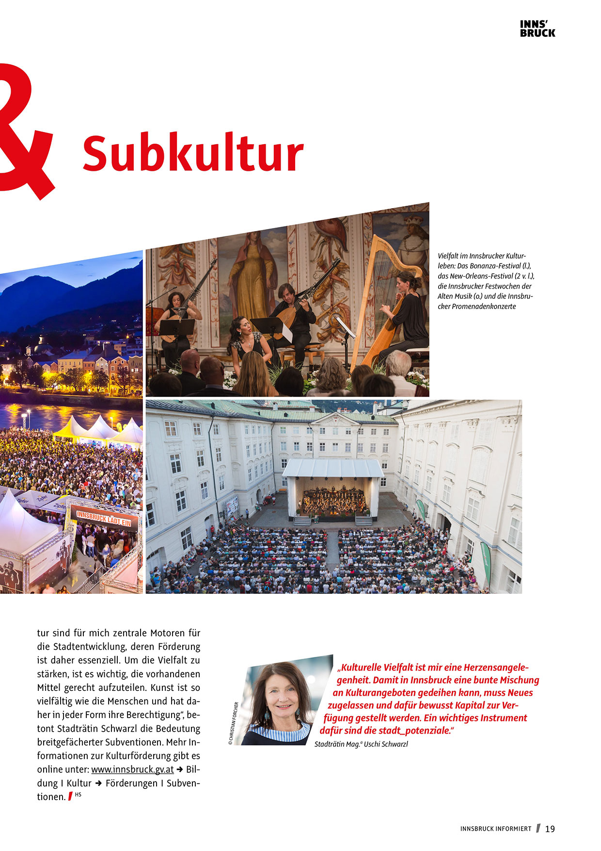 online unter: www.innsbruck.gv.at , Bildung I Kultur , Förderungen I Subventionen. HS