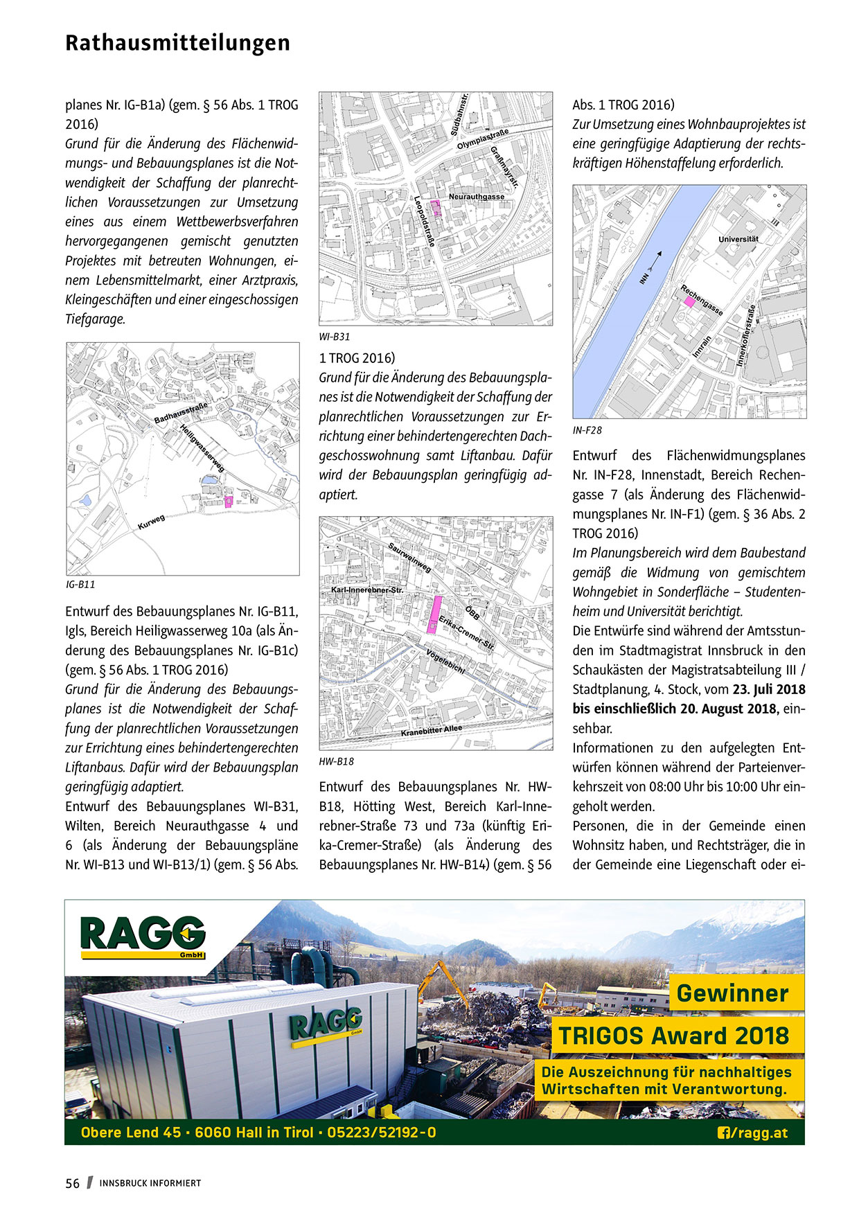 Die Entwürfe sind während der Amtsstunden im Stadtmagistrat Innsbruck in den