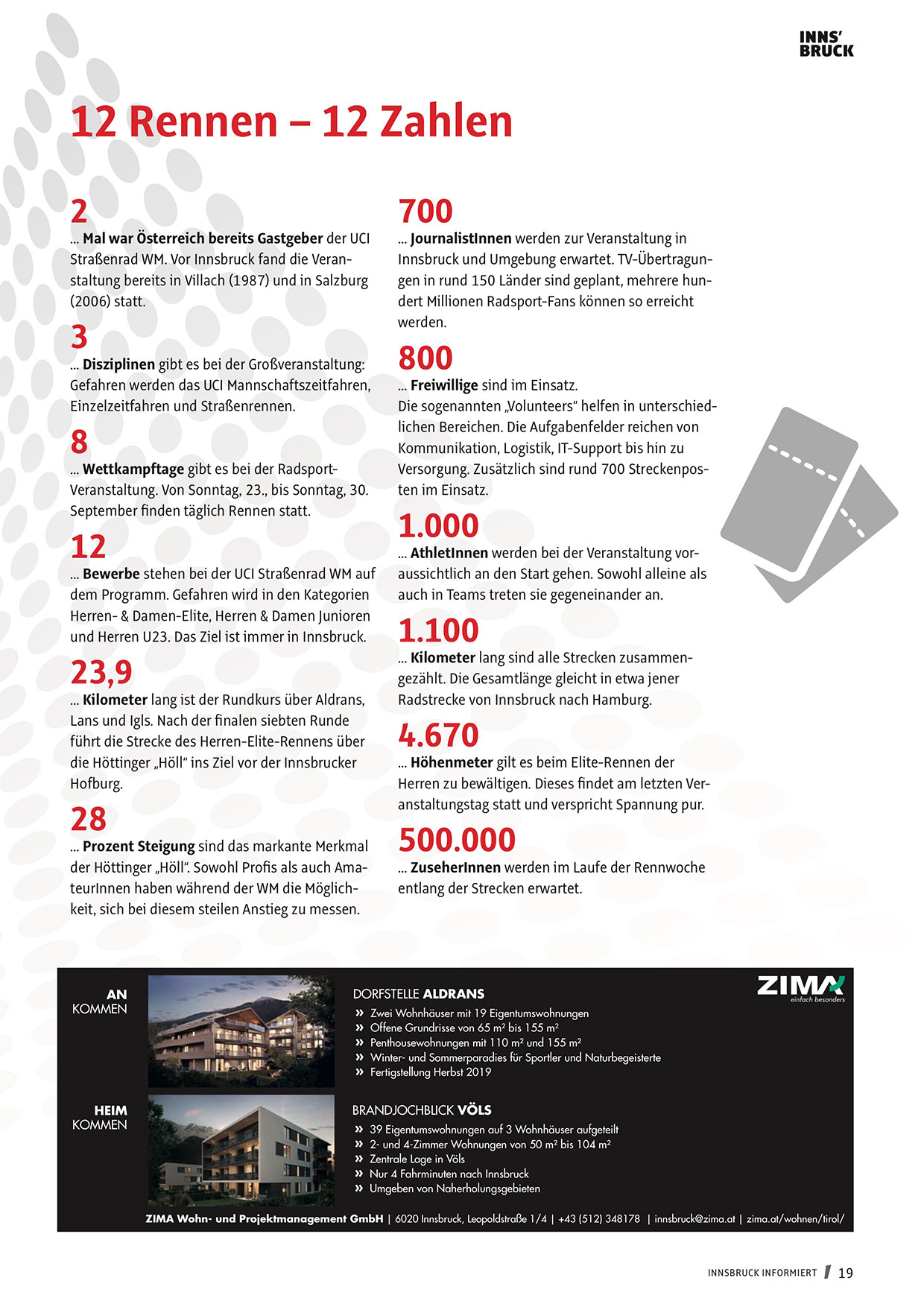 Innsbruck und Umgebung erwartet. TV-Übertragungen in rund 150 Länder sind geplant, mehrere hundert Millionen Radsport-Fans können so erreicht
