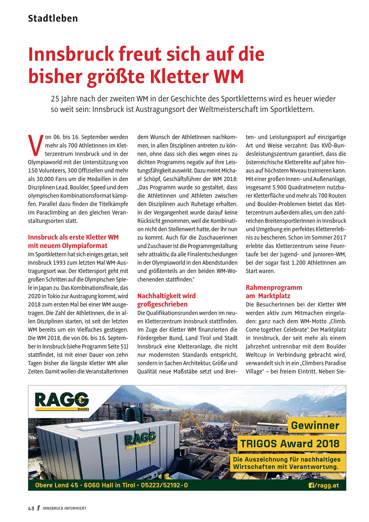 Innsbruck 1993 zum letzten Mal WM-Austragungsort war. Der Klettersport geht mit