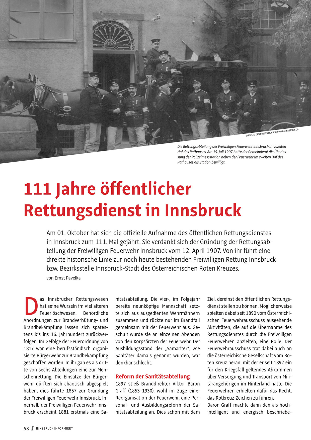 in Innsbruck zum 111. Mal gejährt. Sie verdankt sich der Gründung der Rettungsabteilung der Freiwilligen Feuerwehr Innsbruck vom 12. April 1907. Von ihr führt eine