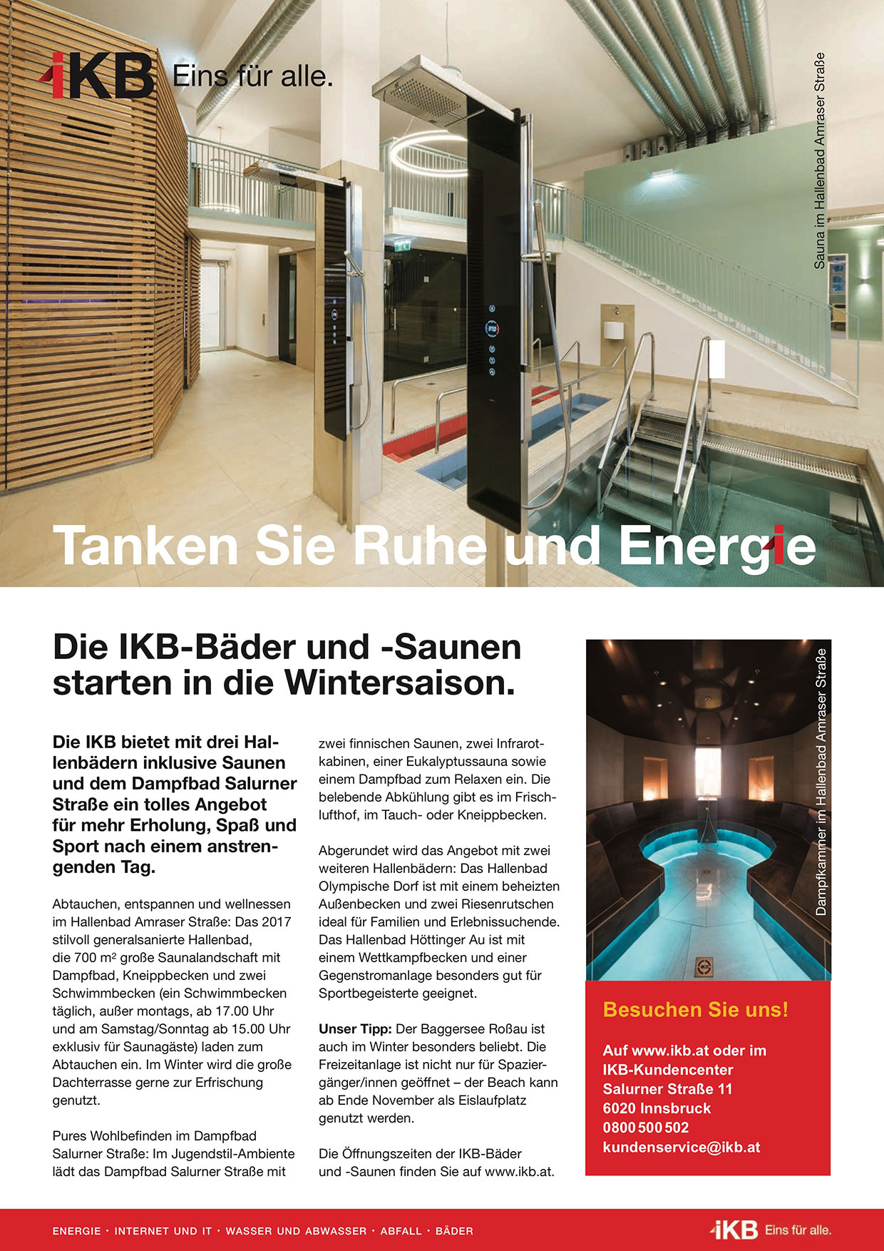 Die IKB bietet mit drei Hallenbädern inklusive Saunen