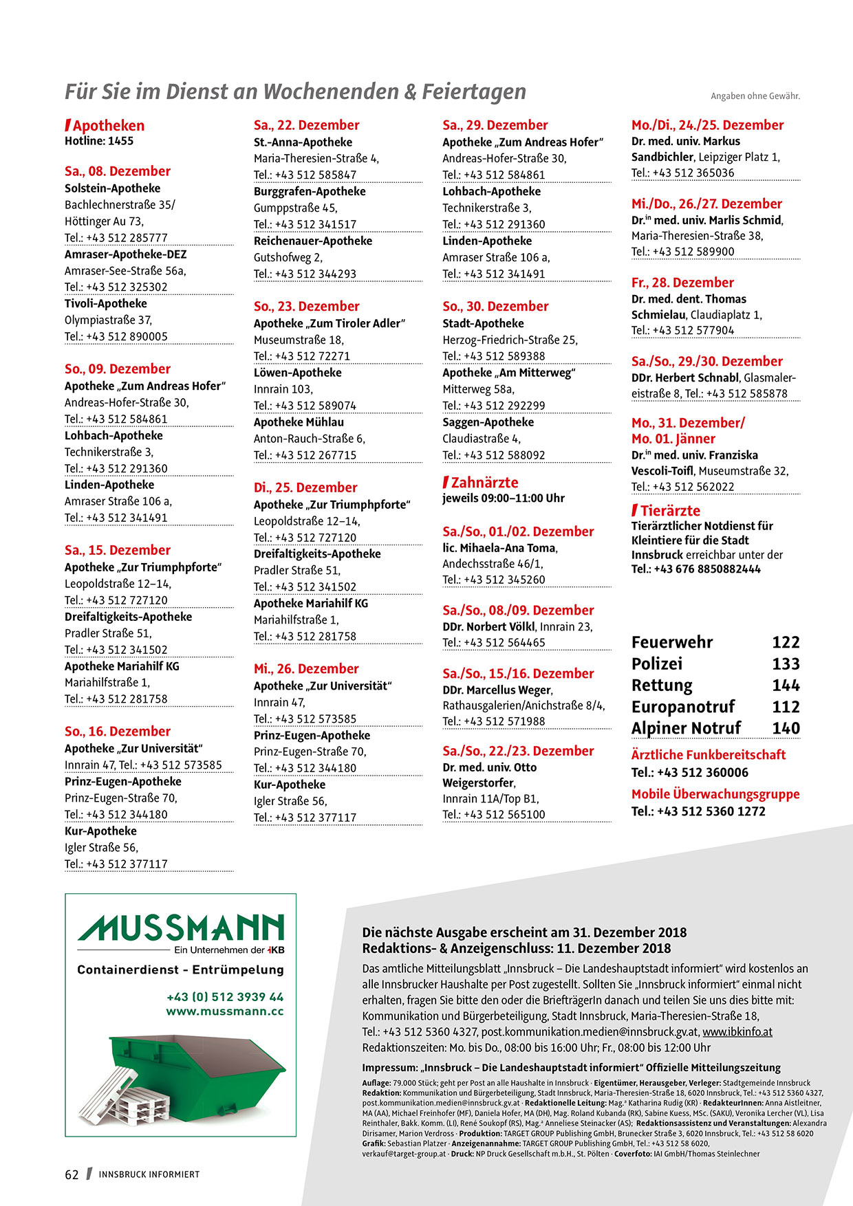 Impressum: „Innsbruck – Die Landeshauptstadt informiert“ Offizielle Mitteilungszeitung