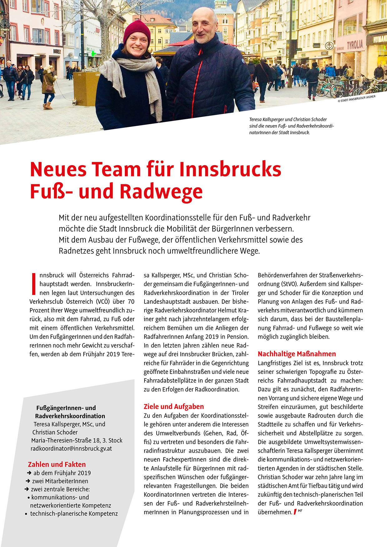 sind die neuen Fuß- und RadverkehrskoordinatorInnen der Stadt Innsbruck.