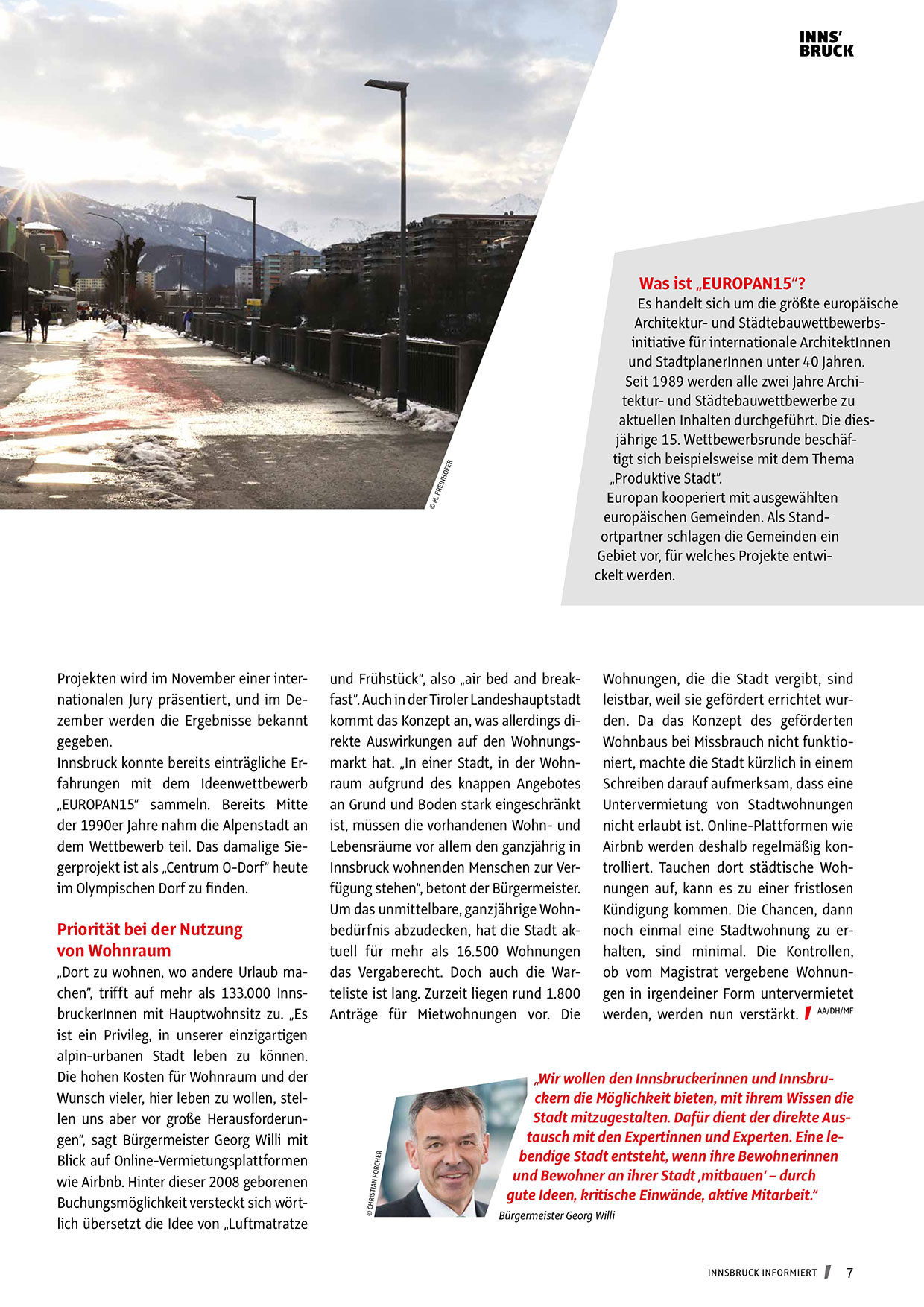 Innsbruck wohnenden Menschen zur Verfügung stehen“, betont der Bürgermeister.