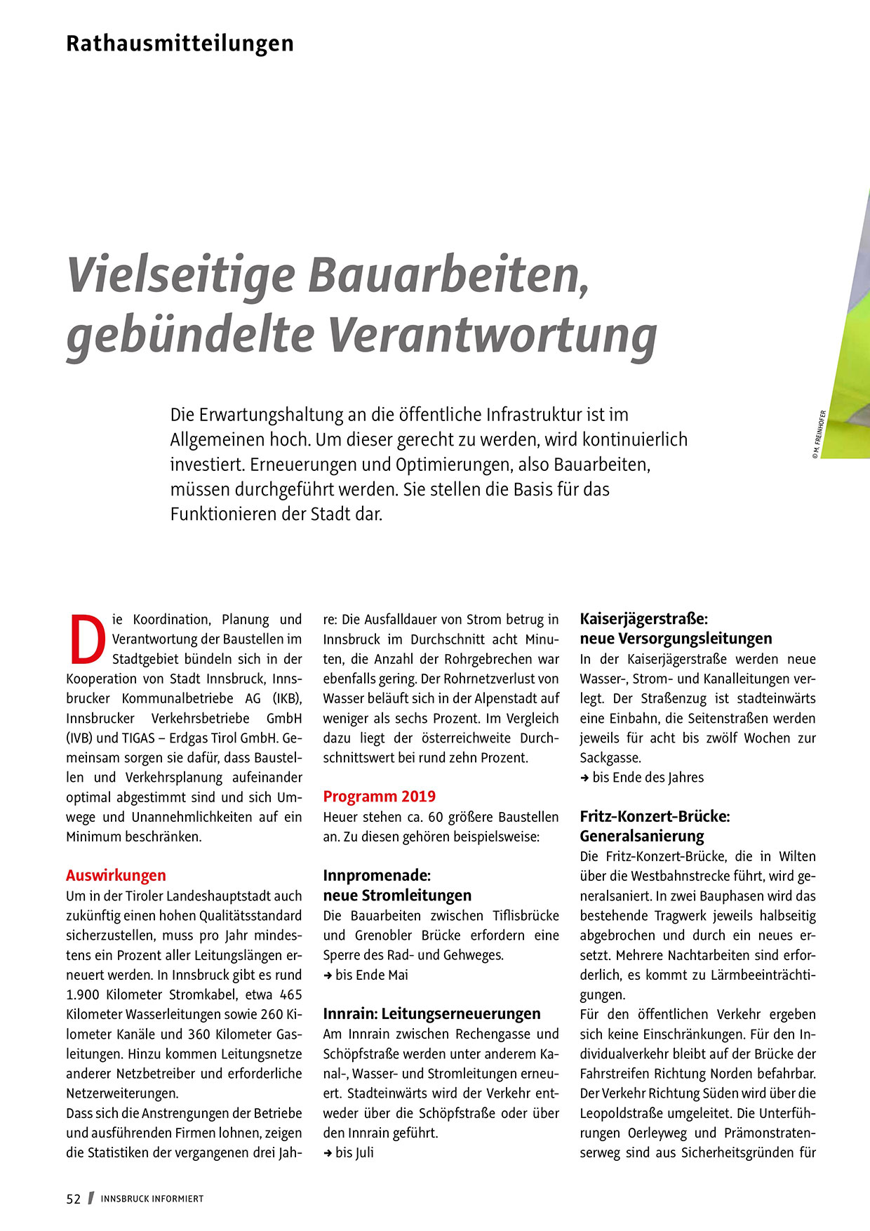 (IVB) und TIGAS – Erdgas Tirol GmbH. Gemeinsam sorgen sie dafür, dass Baustellen und Verkehrsplanung aufeinander
