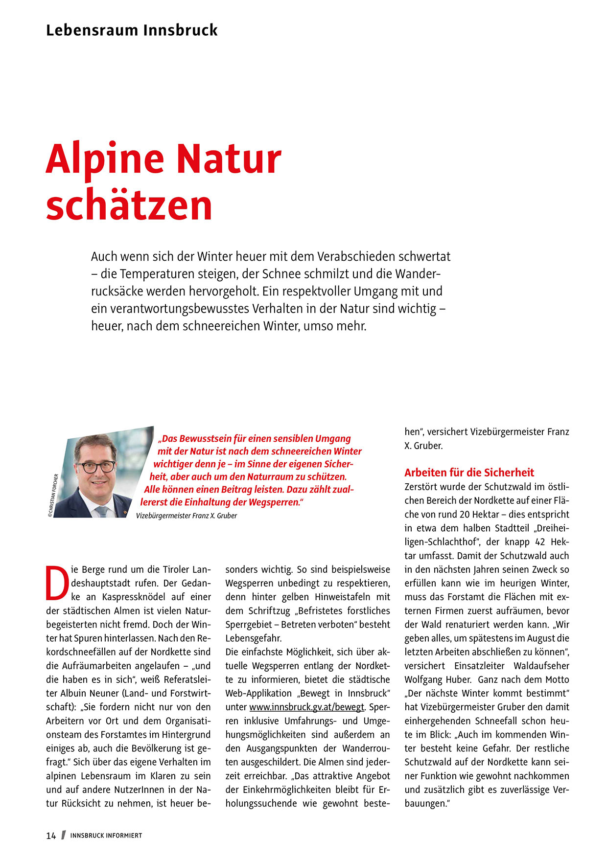 der städtischen Almen ist vielen Naturbegeisterten nicht fremd. Doch der Winter hat Spuren hinterlassen. Nach den Rekordschneefällen auf der Nordkette sind