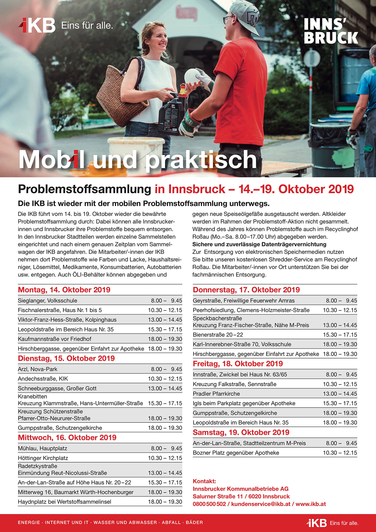 Problemstoffsammlung durch: Dabei können alle Innsbruckerinnen und Innsbrucker ihre Problemstoffe bequem entsorgen.