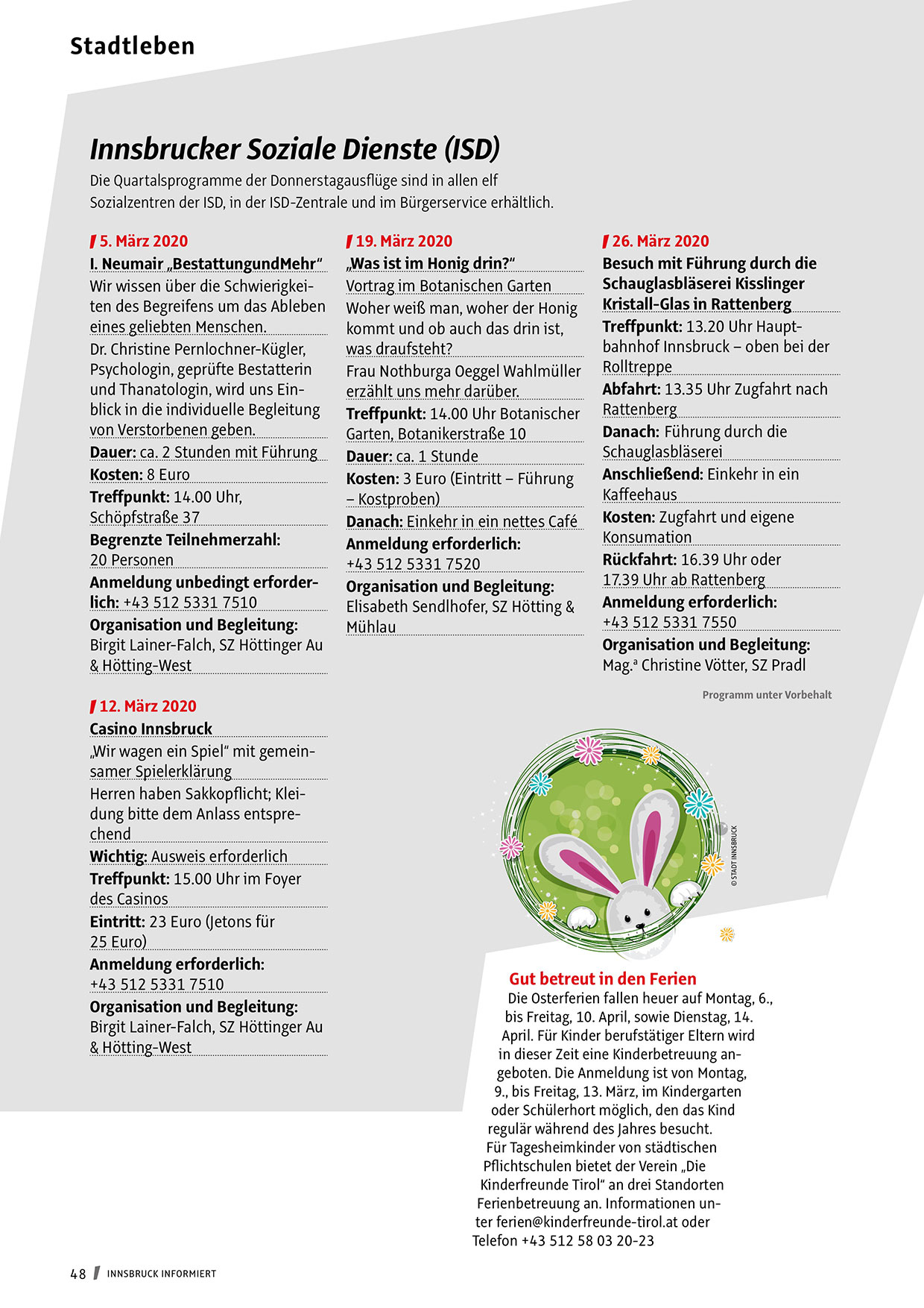 Sozialzentren der ISD, in der ISD-Zentrale und im Bürgerservice erhältlich.