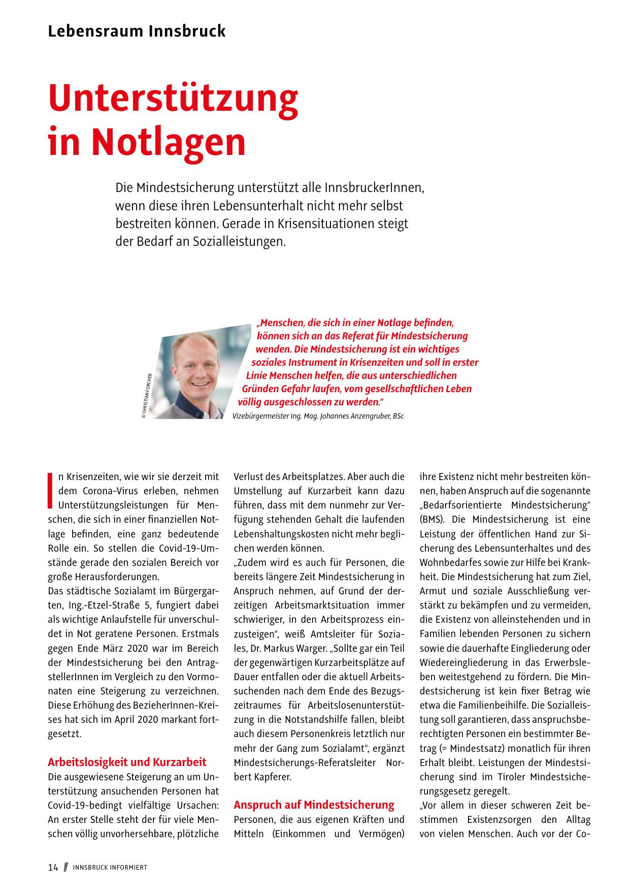 Erhalt bleibt. Leistungen der Mindestsicherung sind im Tiroler Mindestsicherungsgesetz geregelt.