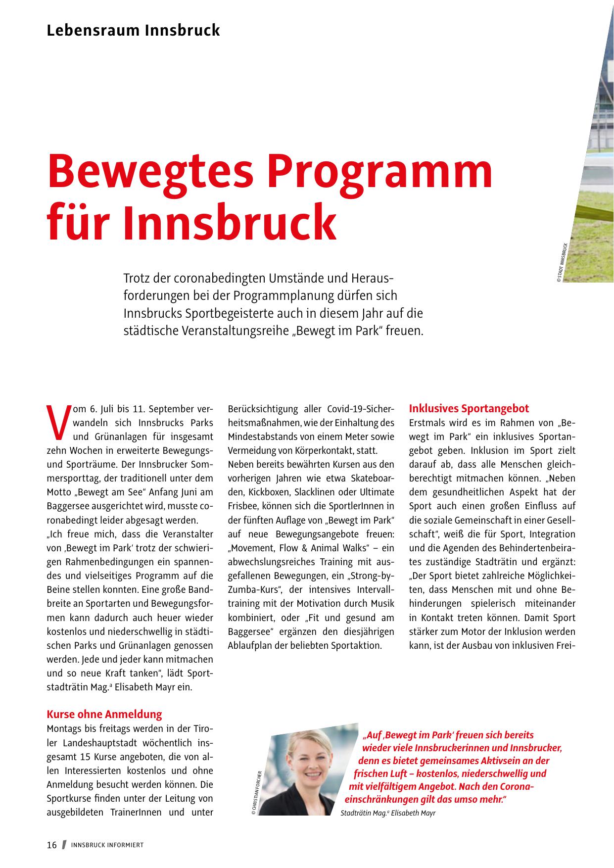 und so neue Kraft tanken“, lädt Sportstadträtin Mag.a Elisabeth Mayr ein.