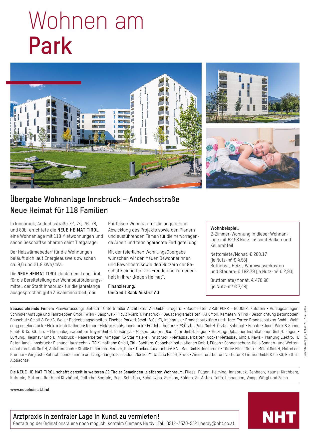 Die NEUE HEIMAT TIROL schafft derzeit in weiteren 22 Tiroler Gemeinden leistbaren Wohnraum: Fliess, Fügen, Haiming, Innsbruck, Jenbach, Kauns, Kirchberg,