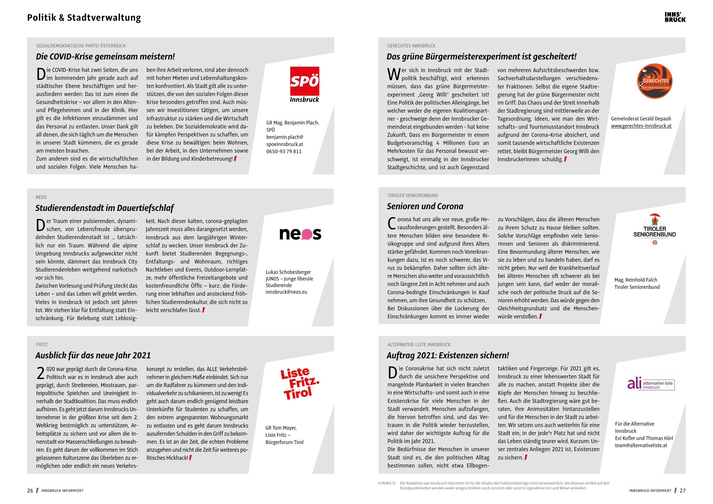H I N W EI S : Die Redaktion von Innsbruck informiert ist für die Inhalte der Fraktionsbeiträge nicht verantwortlich. Die diversen Artikel auf den
