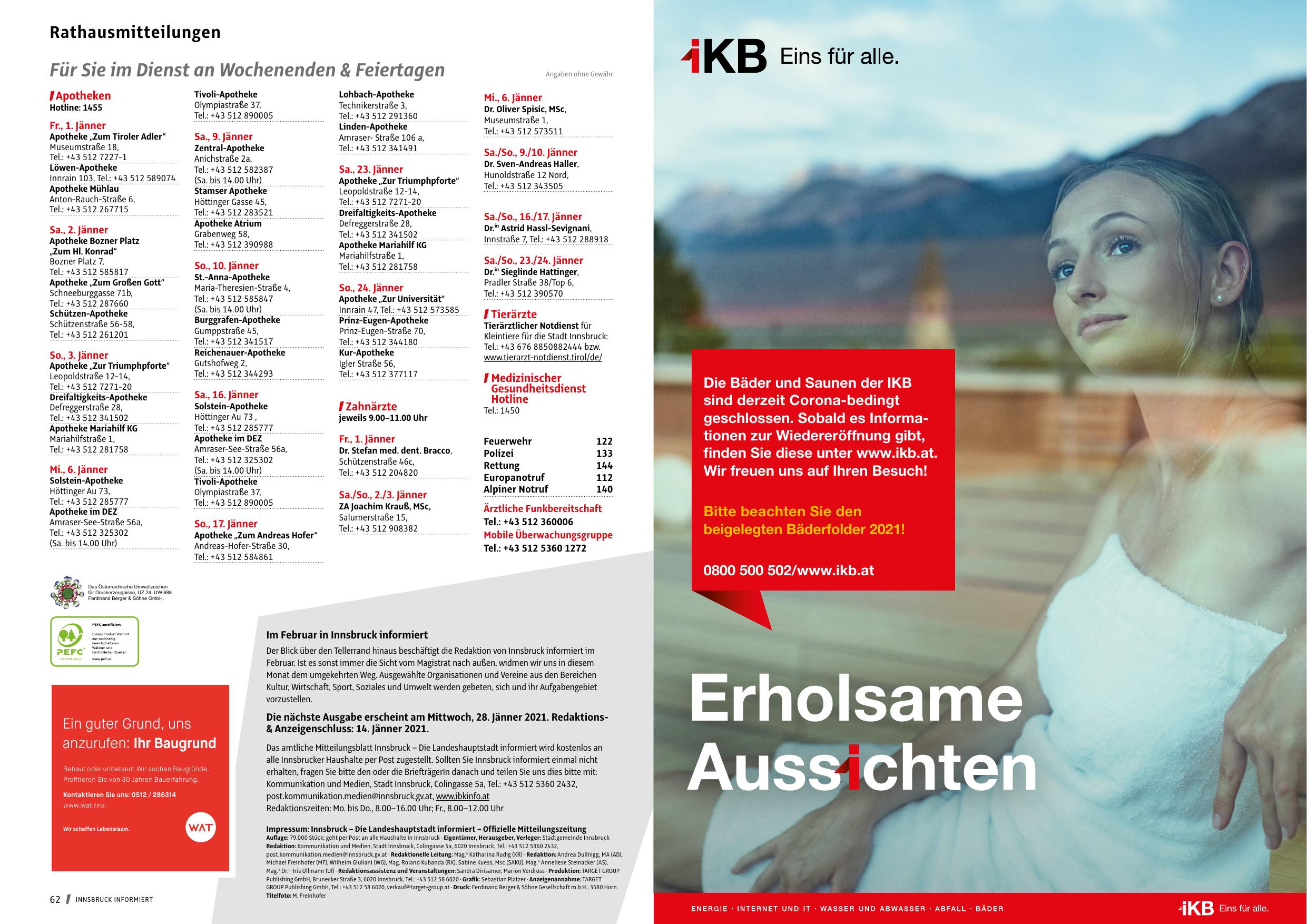 Impressum: Innsbruck – Die Landeshauptstadt informiert – Offizielle Mitteilungszeitung