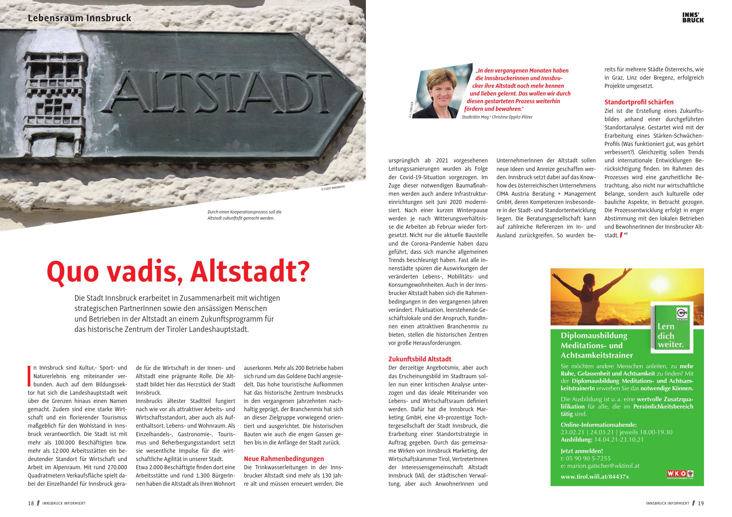 werden . Dafür hat die Innsbruck Marketing GmbH, eine 49-prozentige Tochtergesellschaft der Stadt Innsbruck, die