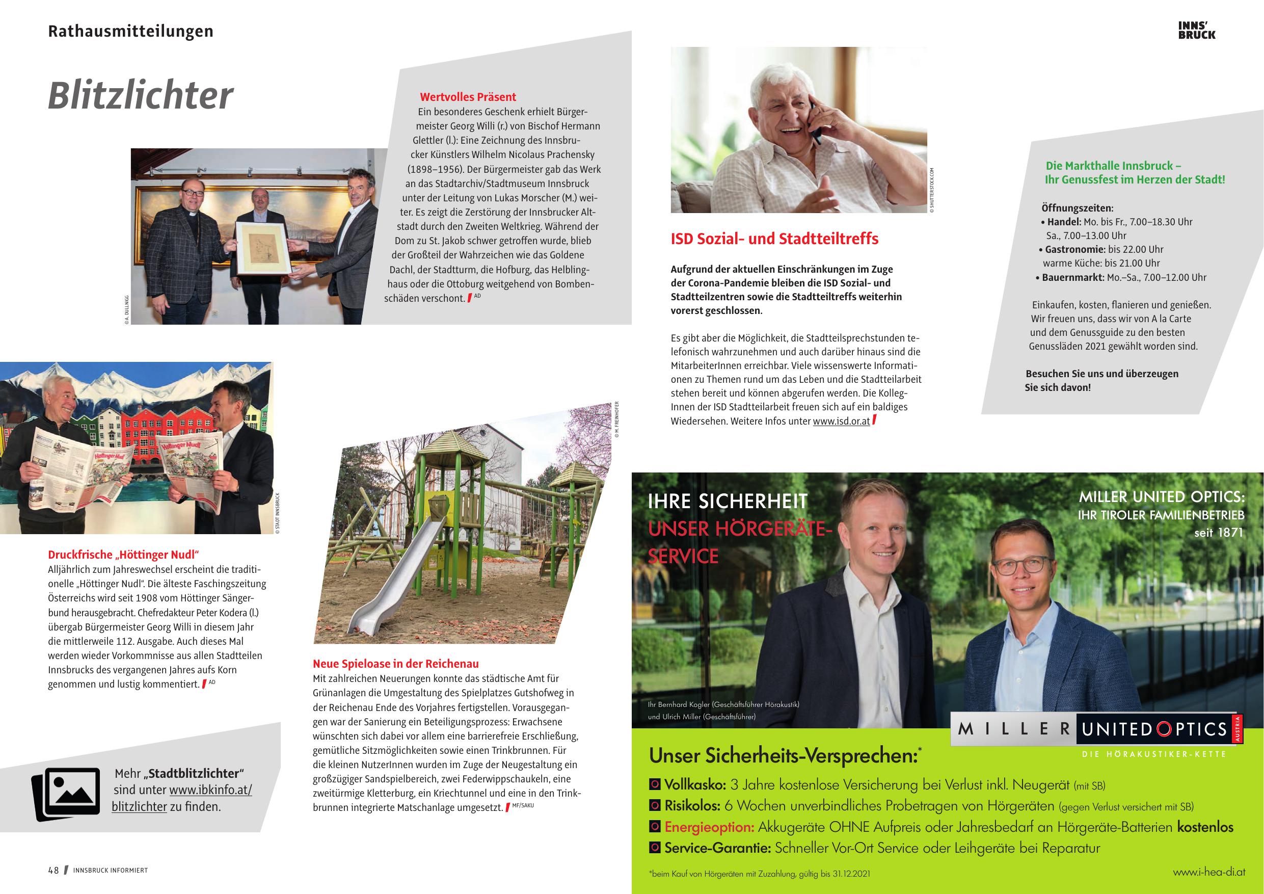 Dachl, der Stadtturm, die Hofburg, das Helblinghaus oder die Ottoburg weitgehend von Bombenschäden verschont. AD