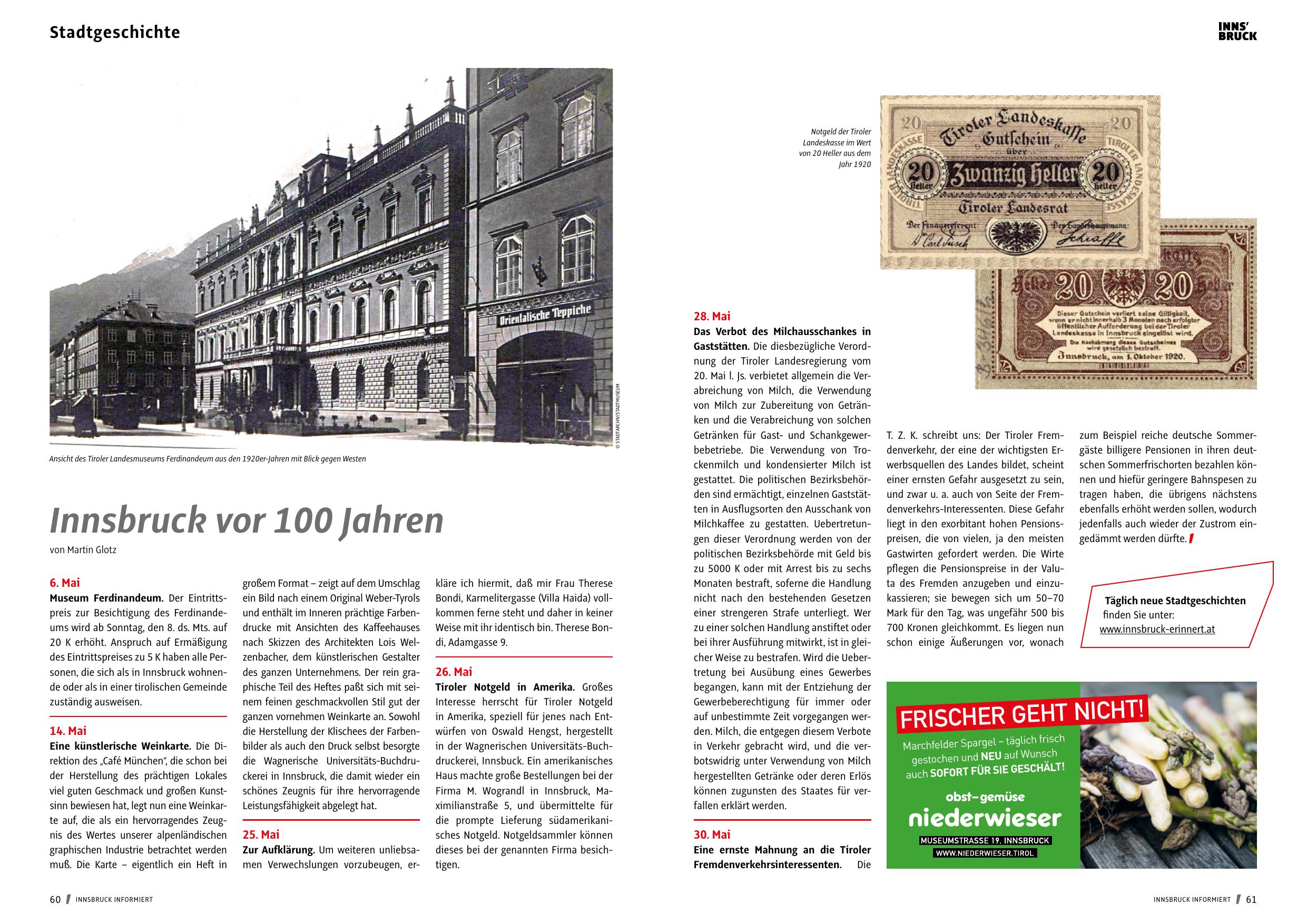 des Eintrittspreises zu 5 K haben alle Personen, die sich als in Innsbruck wohnende oder als in einer tirolischen Gemeinde
