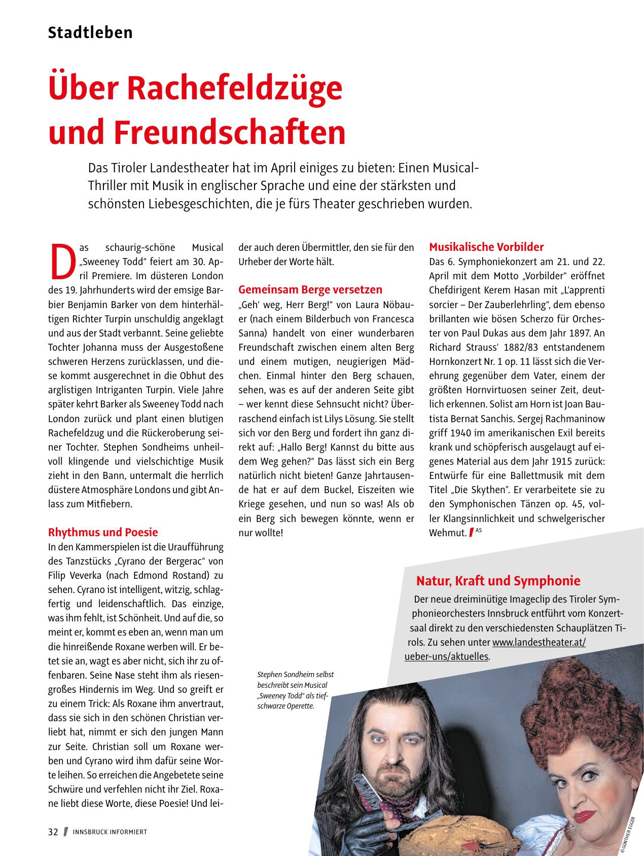 Das Tiroler Landestheater hat im April einiges zu bieten: Einen MusicalThriller mit Musik in englischer Sprache und eine der stärksten und
