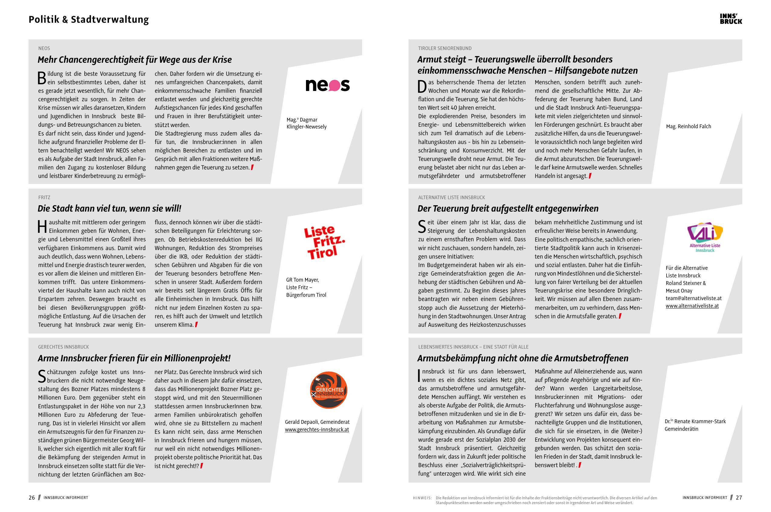 H I N W EI S : Die Redaktion von Innsbruck informiert ist für die Inhalte der Fraktionsbeiträge nicht verantwortlich. Die diversen Artikel auf den