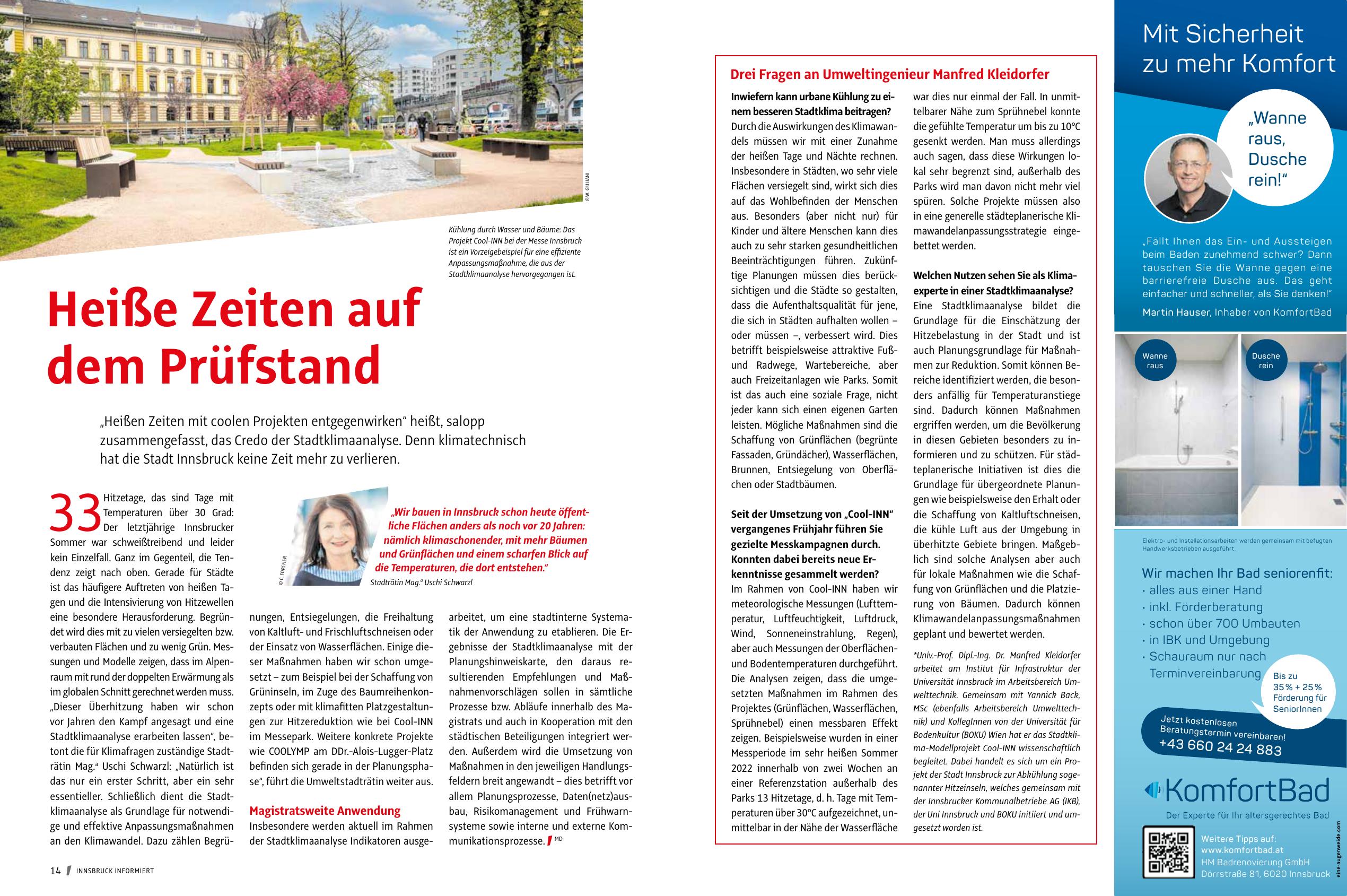 begleitet. Dabei handelt es sich um ein Projekt der Stadt Innsbruck zur Abkühlung sogenannter Hitzeinseln, welches gemeinsam mit
