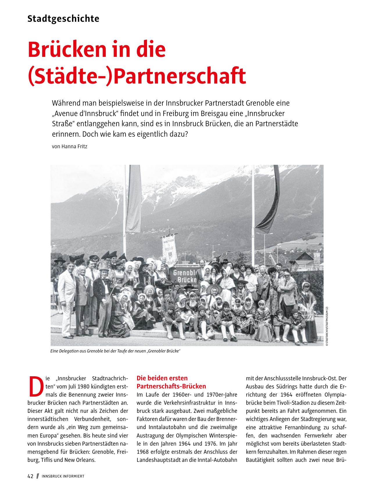ie „Innsbrucker Stadtnachrichten“ vom Juli 1980 kündigten erstmals die Benennung zweier Innsbrucker Brücken nach Partnerstädten an.