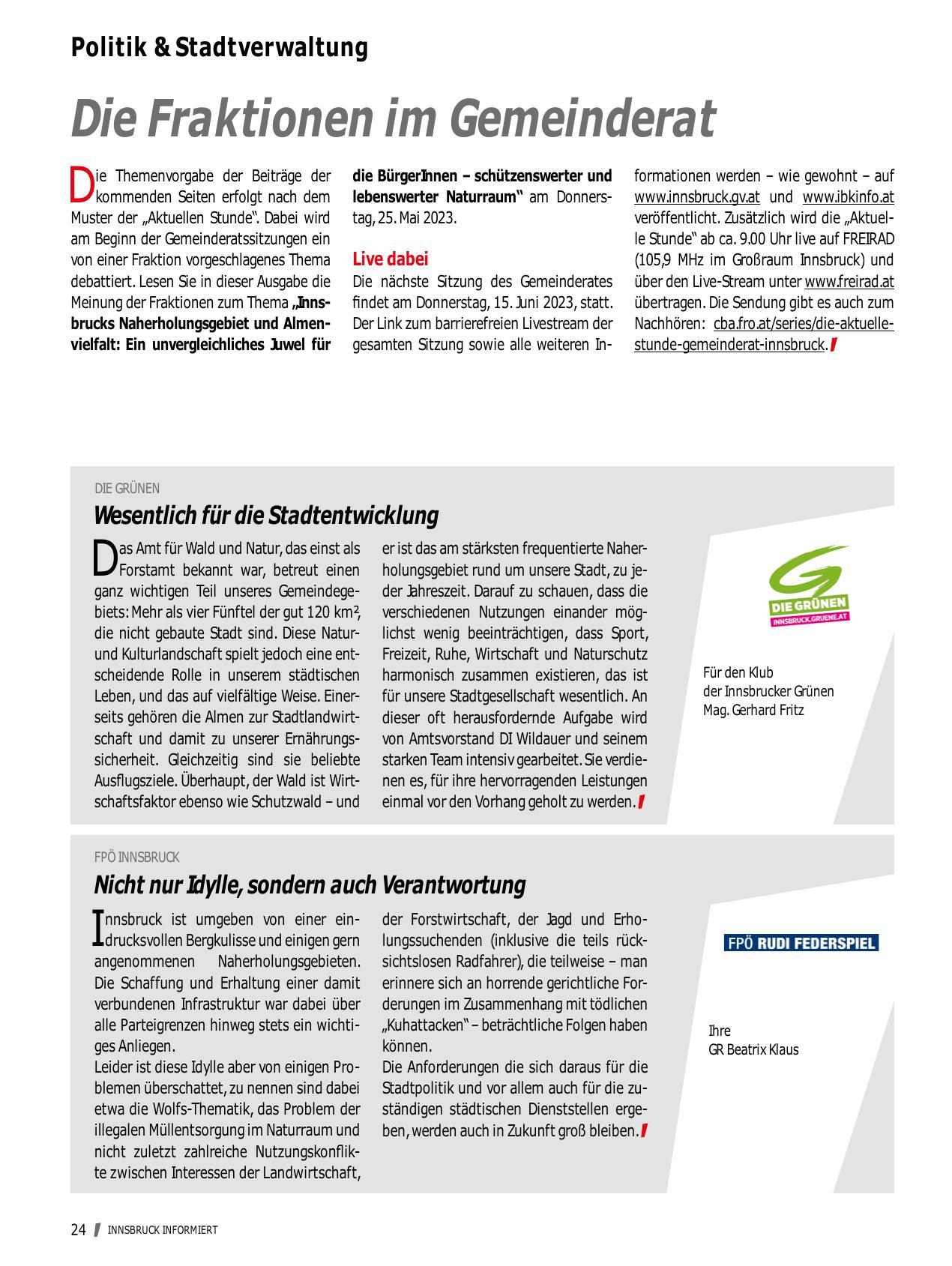 Meinung der Fraktionen zum Thema „Innsbrucks Naherholungsgebiet und Almenvielfalt: Ein unvergleichliches Juwel für