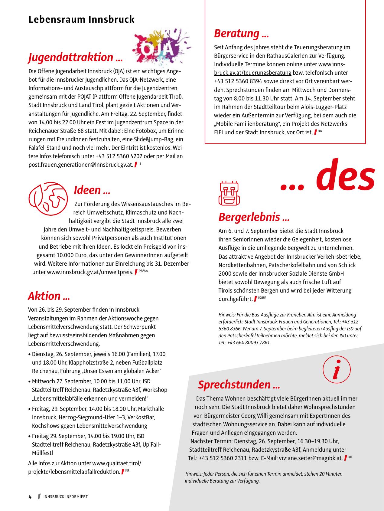 erforderlich: Stadt Innsbruck, Frauen und Generationen, Tel.: +43 512
