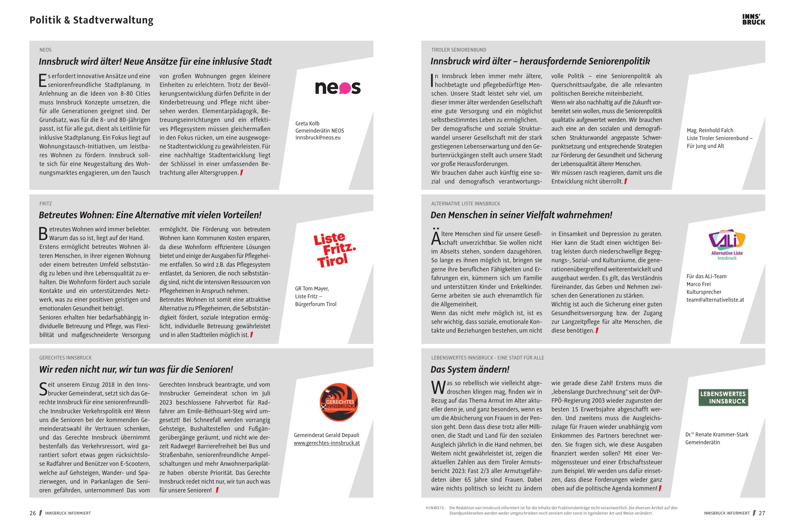 H I N W EI S : Die Redaktion von Innsbruck informiert ist für die Inhalte der Fraktionsbeiträge nicht verantwortlich . Die diversen Artikel auf den
