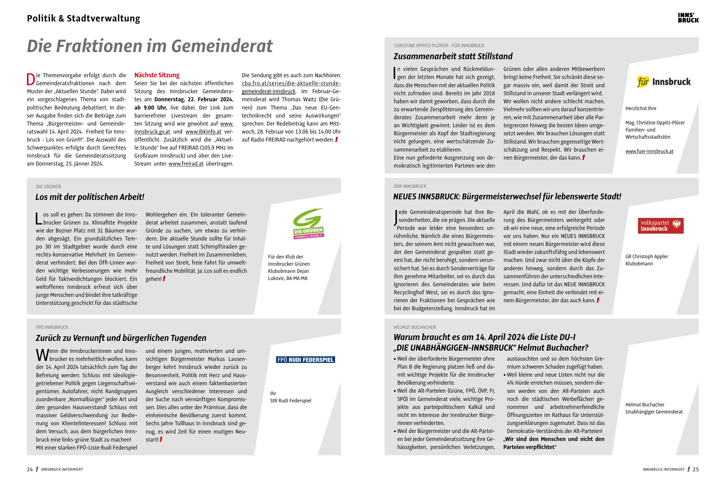 Thema „Bürgermeister- und Gemeinderatswahl 14. April 2024. Freiheit für Innsbruck - Los von Grün!!!“. Die Auswahl des