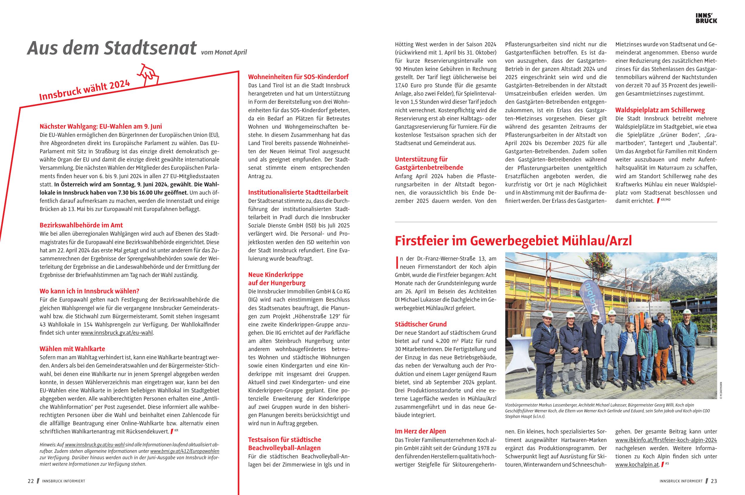 zur Verfügung. Darüber hinaus werden auch in der Juni-Ausgabe von Innsbruck informiert weitere Informationen zur Verfügung stehen.