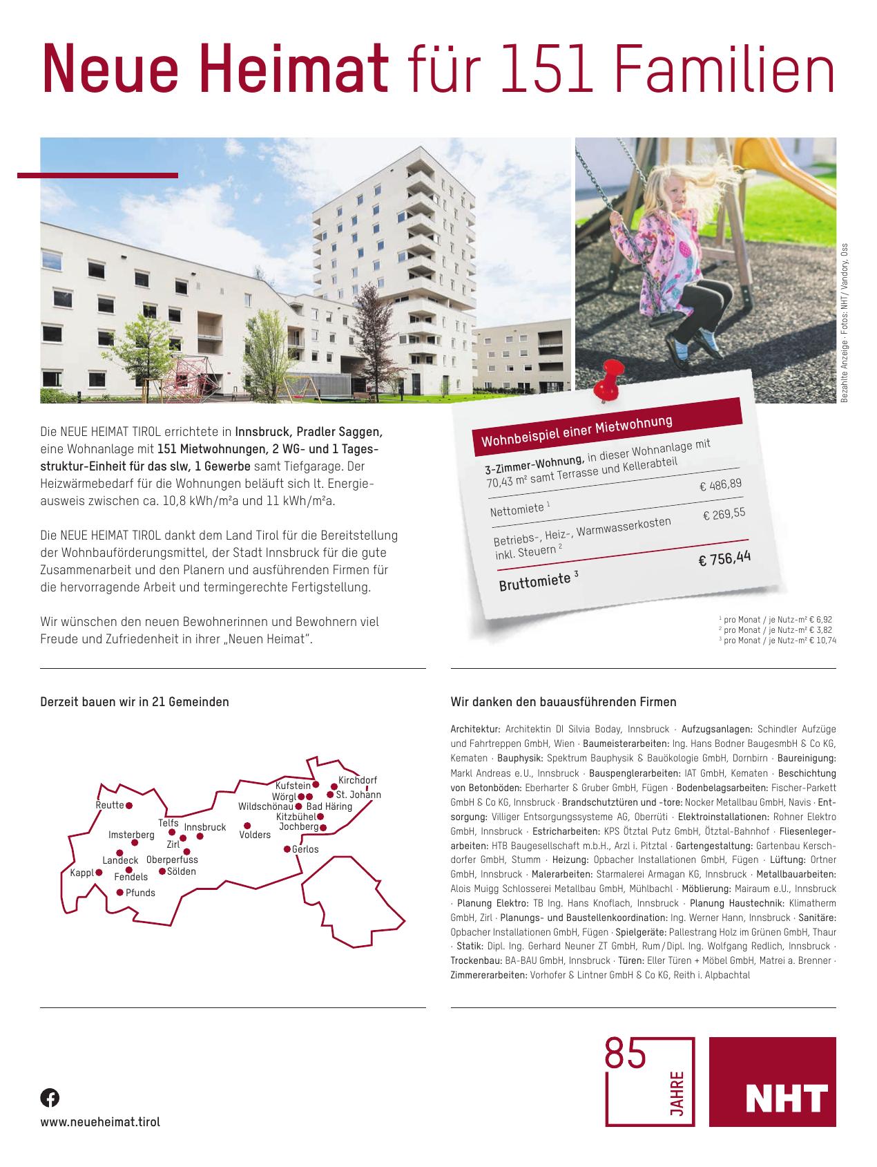 Die NEUE HEIMAT TIROL dankt dem Land Tirol für die Bereitstellung