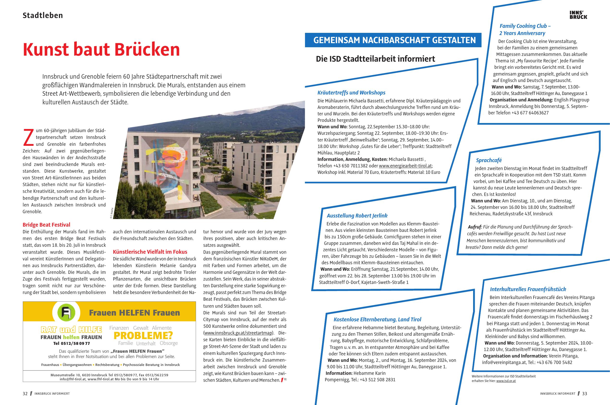 (www.innsbruck.gv.at/streetartmap). Diese Karten bieten Einblicke in die vielfältige Street-Art-Szene der Stadt und laden zu