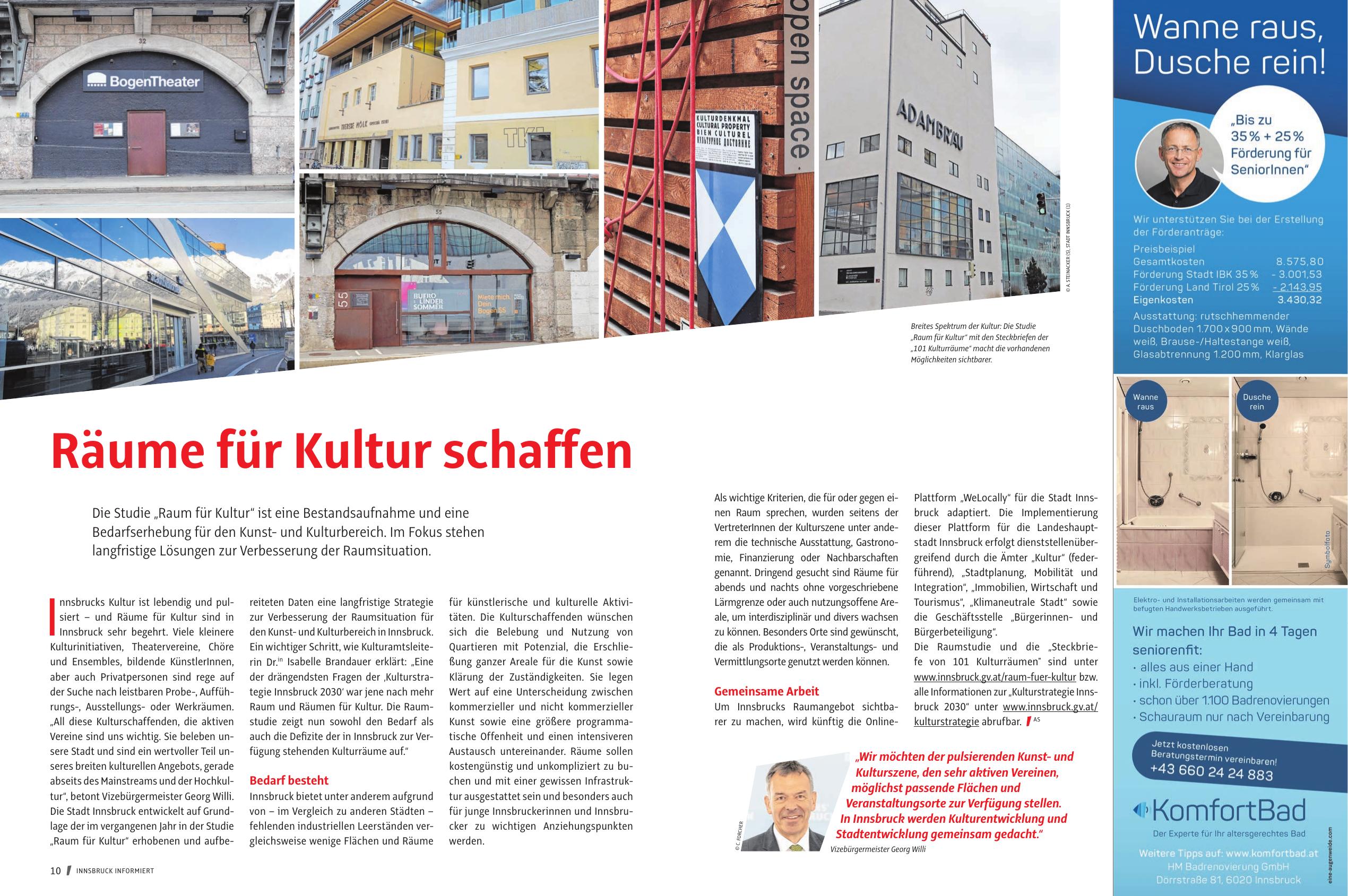 alle Informationen zur „Kulturstrategie Innsbruck 2030“ unter www .innsbruck .g v .at/