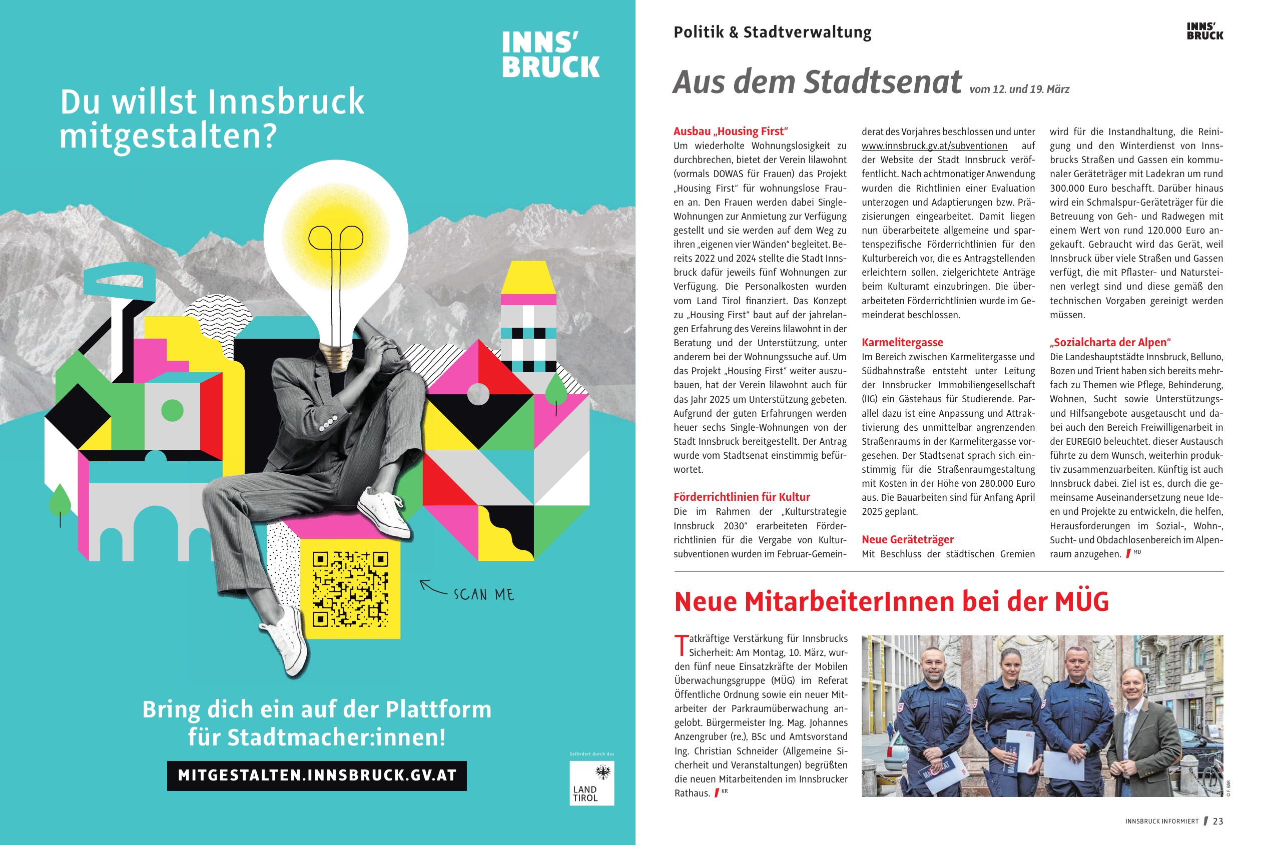 Innsbruck 2030“ erarbeiteten Förderrichtlinien für die Vergabe von Kultursubventionen wurden im Februar-Gemein-