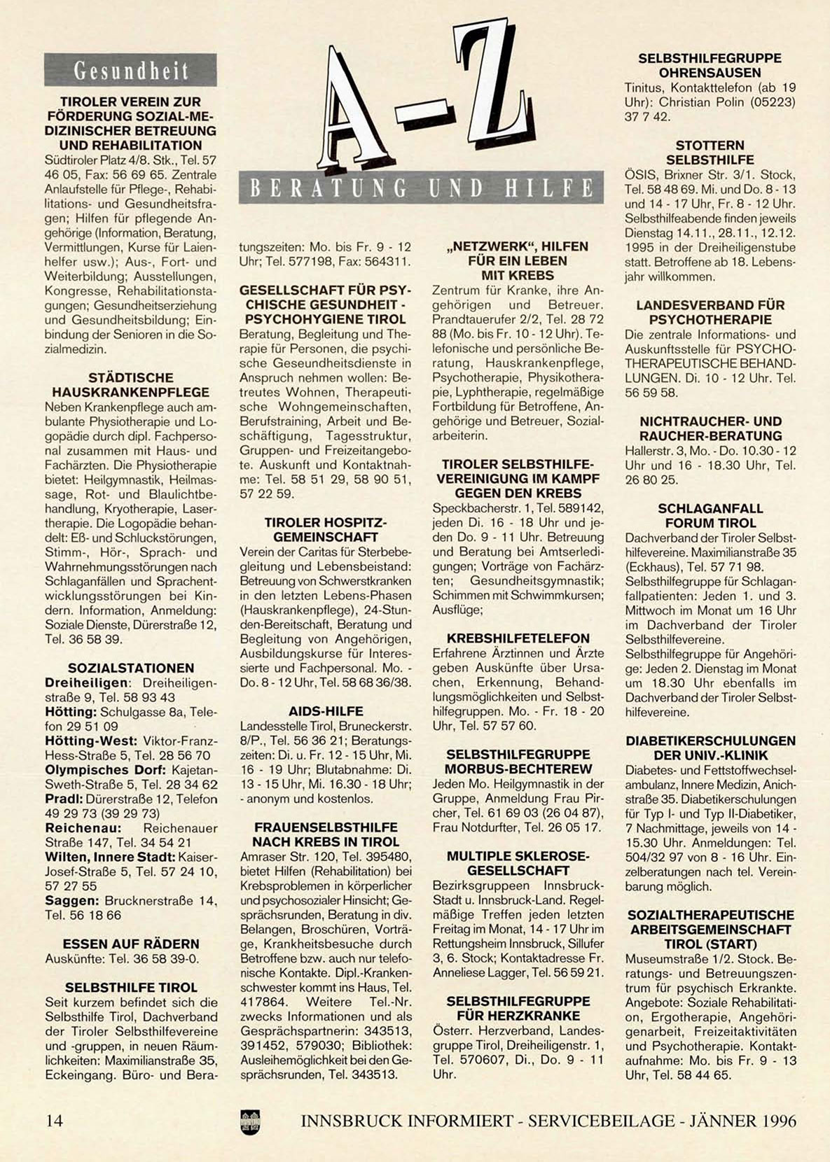 INNSBRUCK INFORMIERT - SERVICEBEILAGE - JÄNNER 1996