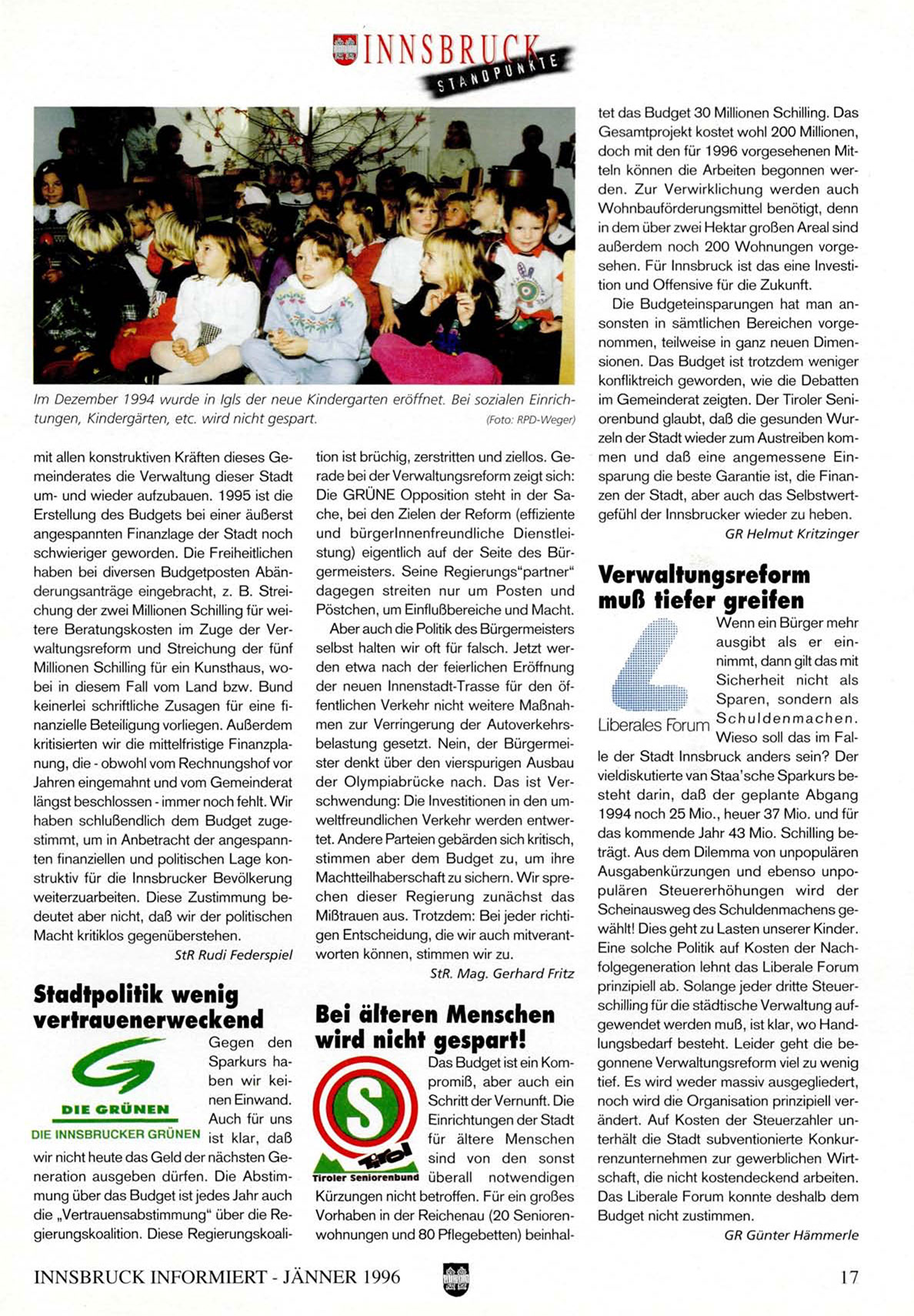 im Gemeinderat zeigten. Der Tiroler SeniIm Dezember 1994 wurde in Igis der neue Kindergarten eröffnet. Bei sozialen Einrichtungen, Kindergärten, etc. wird nicht gespart.
