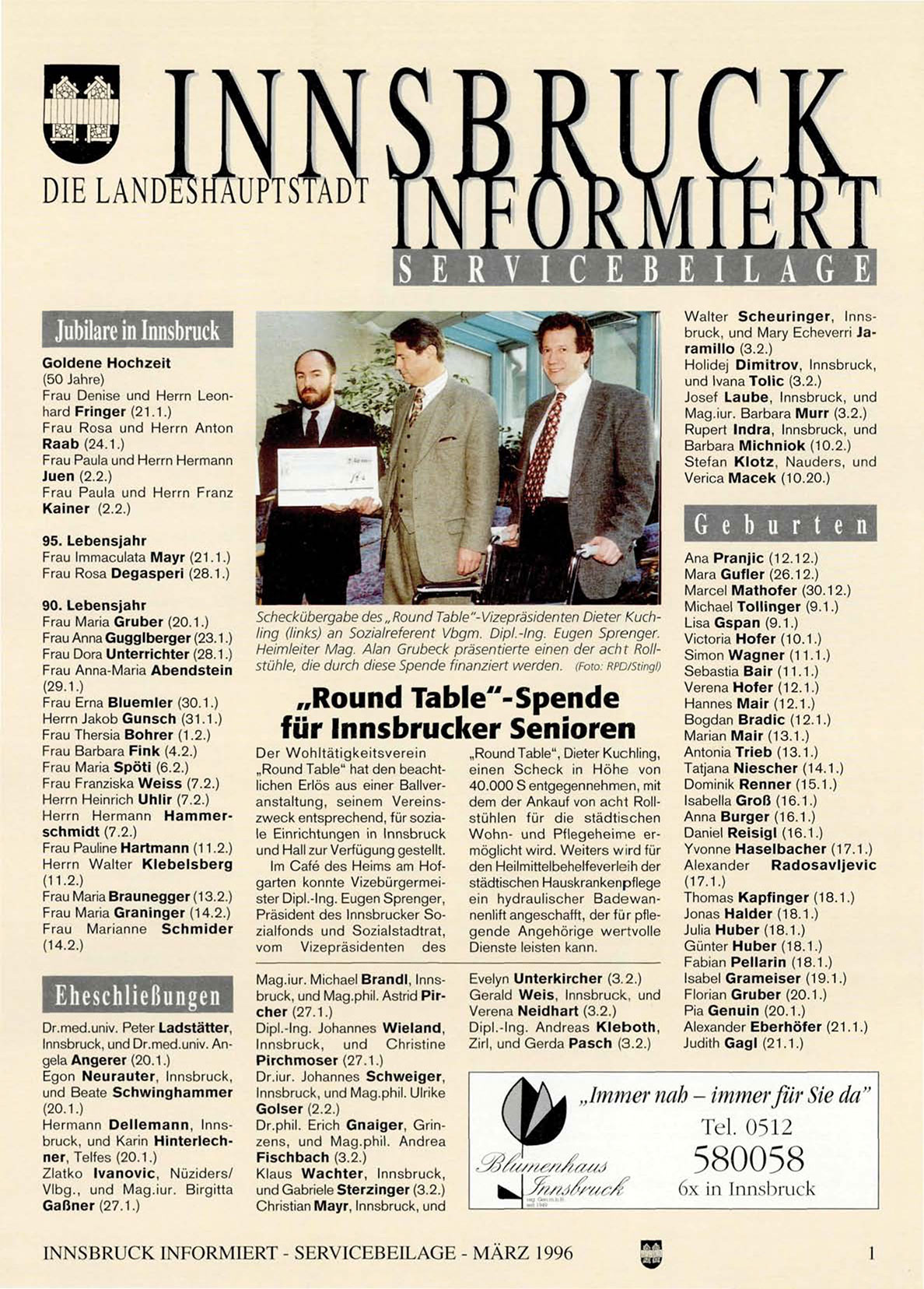 INNSBRUCK INFORMIERT - SERVICEBEILAGE - MÄRZ 1996
