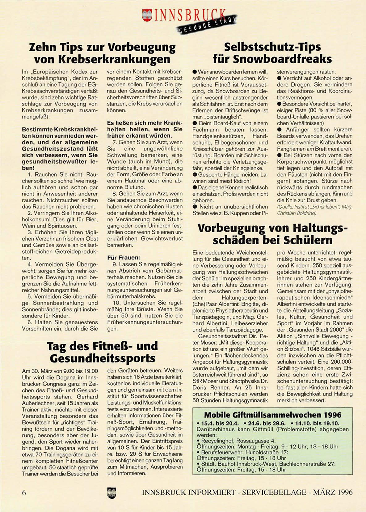 INNSBRUCK INFORMIERT - SERVICEBEILAGE - MÄRZ 1996