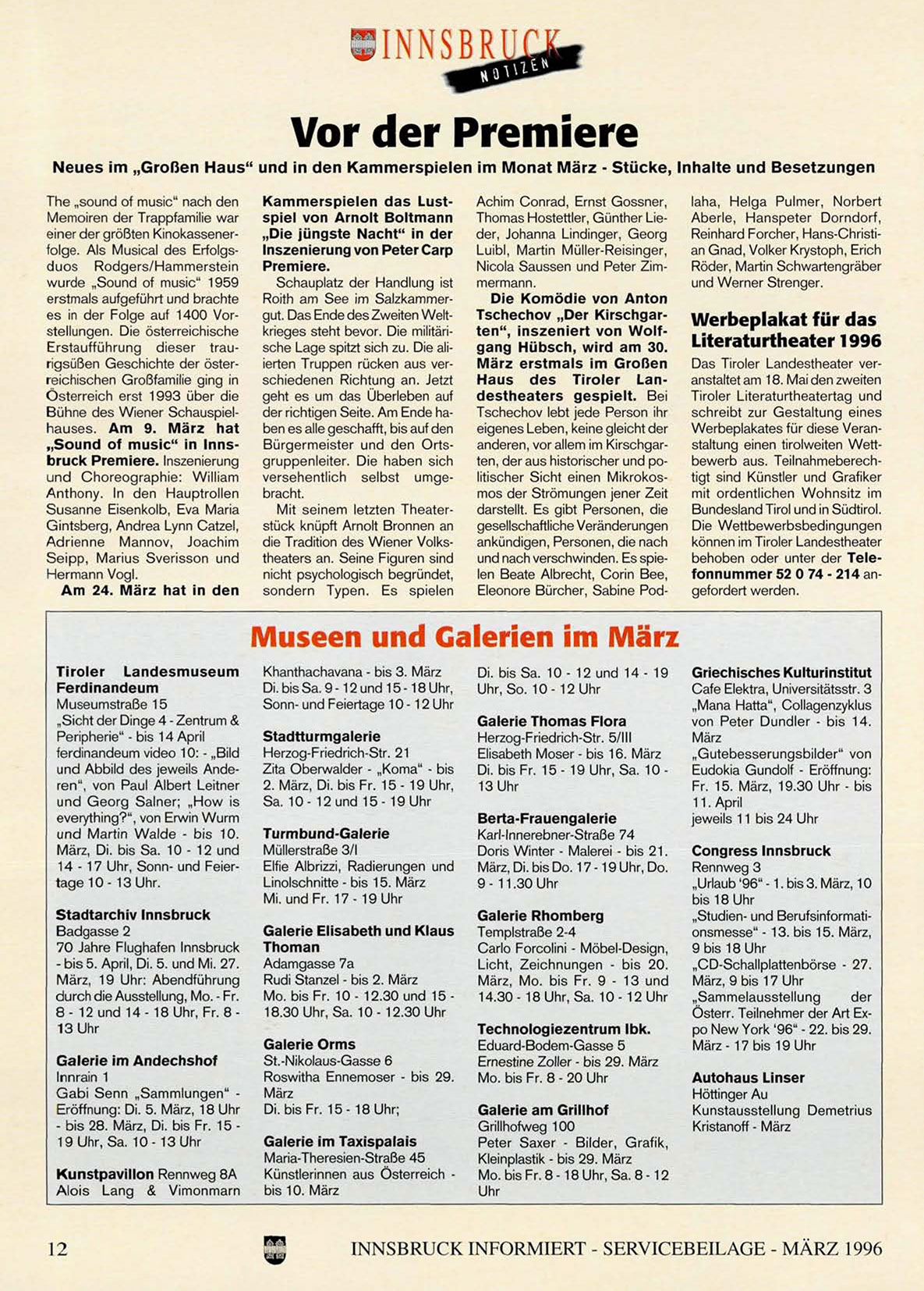 INNSBRUCK INFORMIERT - SERVICEBEILAGE - MÄRZ 1996