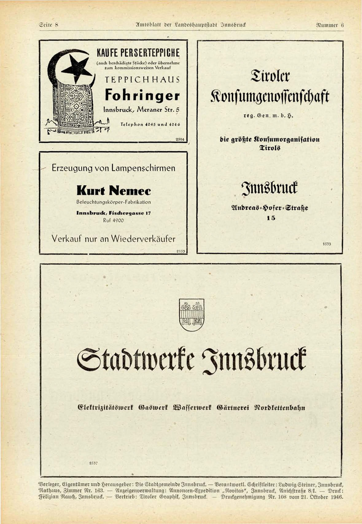 Verleger, Eigentümer und Heransnebor: Die Ltndtliemeinde Innsbruck. — Verantwortl. Schriftleiter: ^ndung Steiner, Innsbrucl,