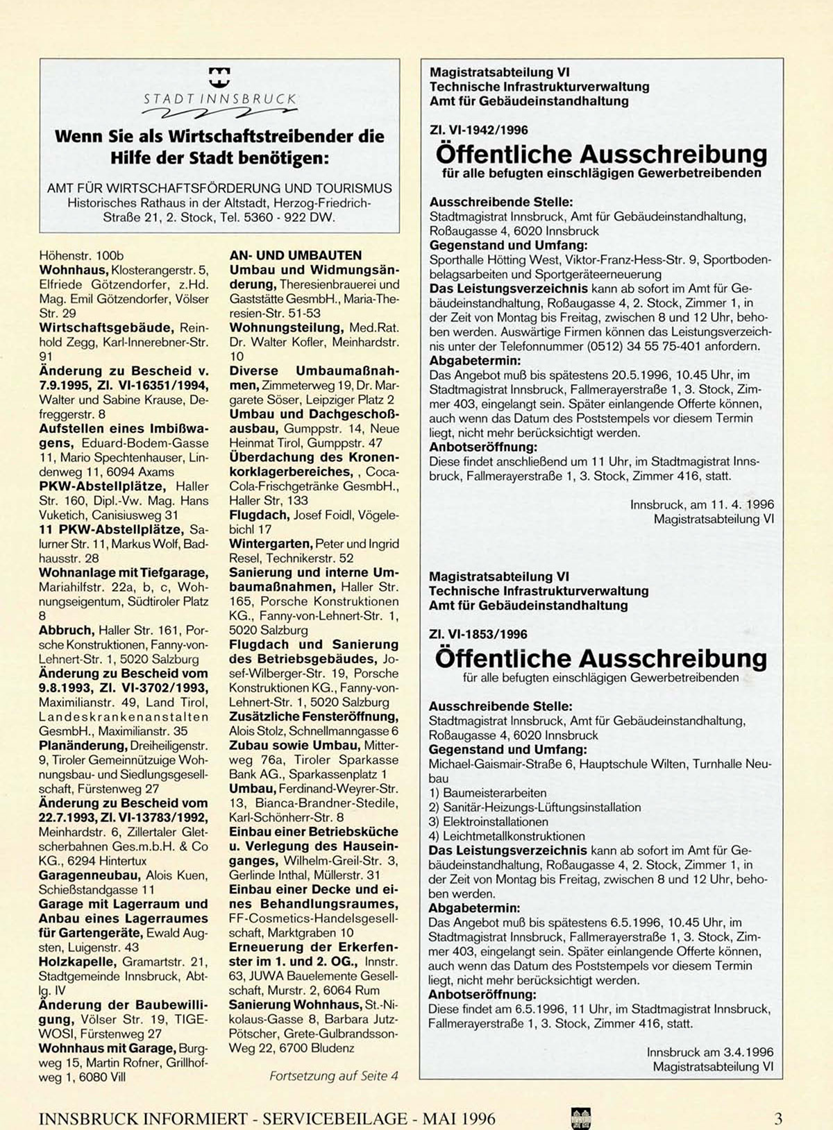 INNSBRUCK INFORMIERT - SERVICEBEILAGE - MAI 1996