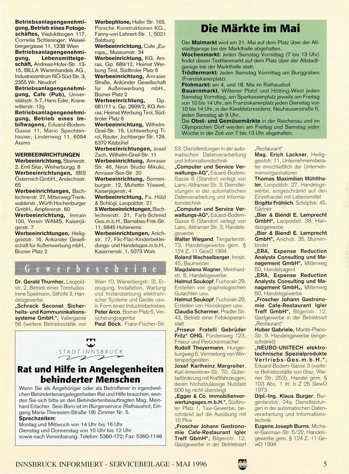 INNSBRUCK INFORMIERT - SERVICEBEILAGE - MAI 1996