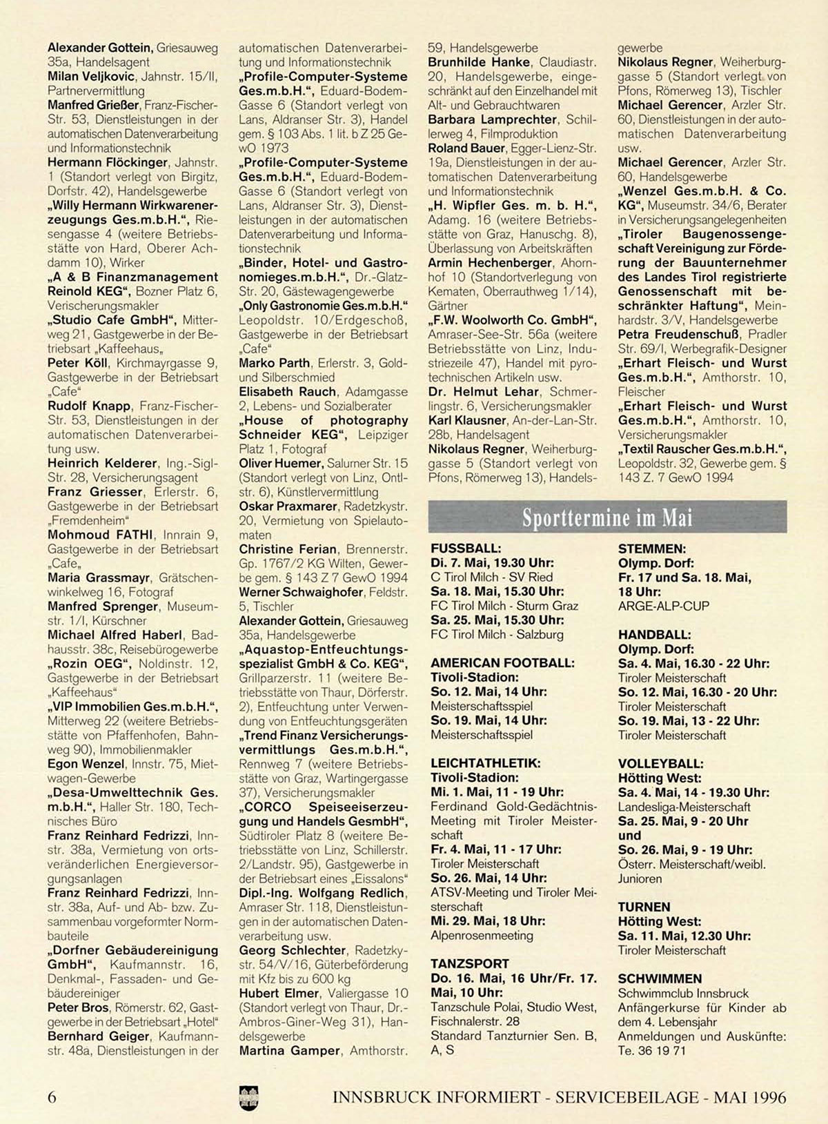 INNSBRUCK INFORMIERT - SERVICEBEILAGE - MAI 1996