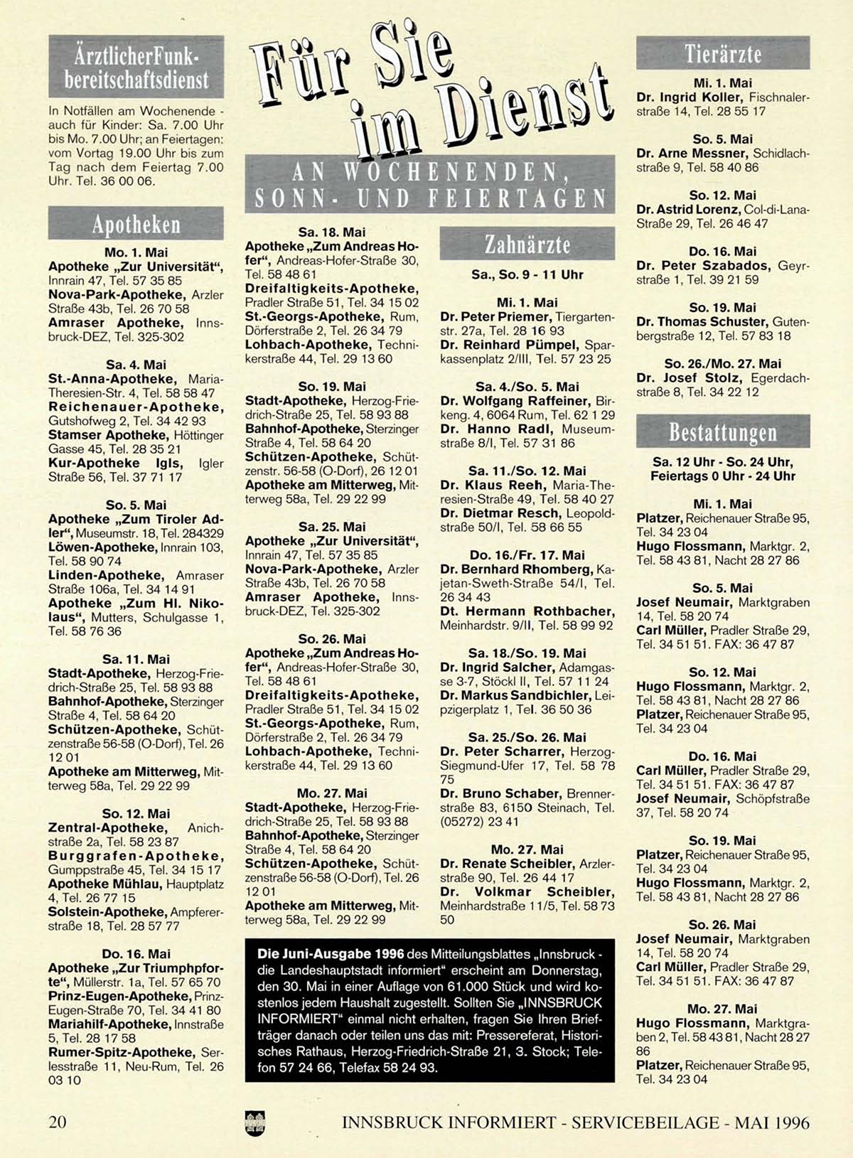 INNSBRUCK INFORMIERT - SERVICEBEILAGE - MAI 1996