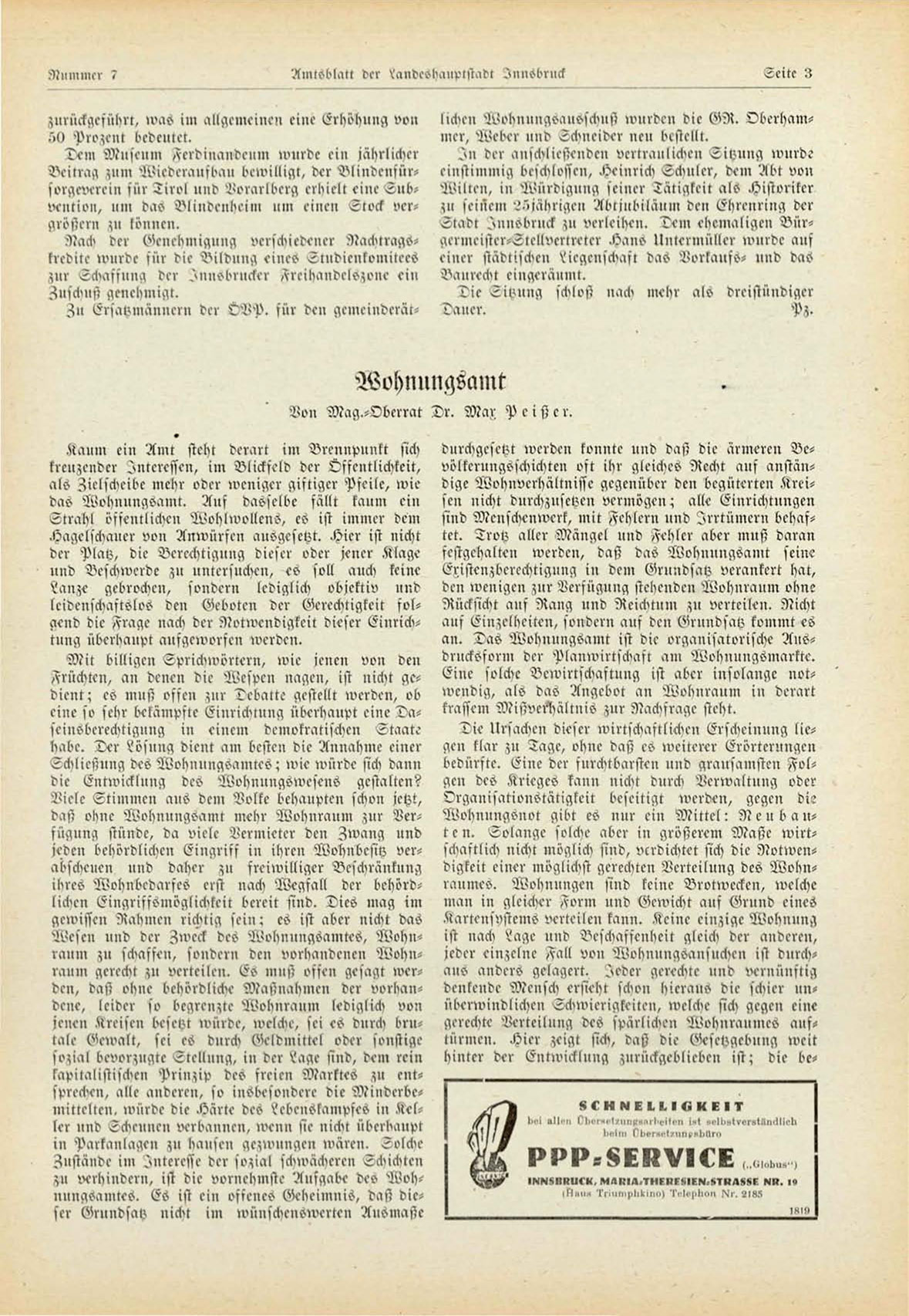 Beitrag zum ^^iederaufban bewilligt, der Blindenfürsorgeverein sür Tirol und Vorarlberg erhielt ciue Subvention, »in dao Blinden!^"!»! uin einen Slock vergrößern zn lönnen.